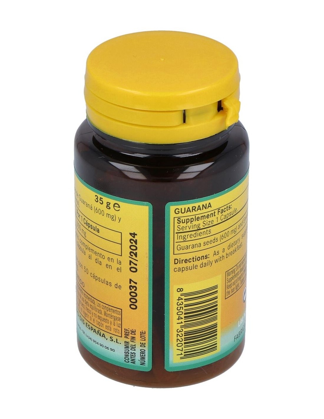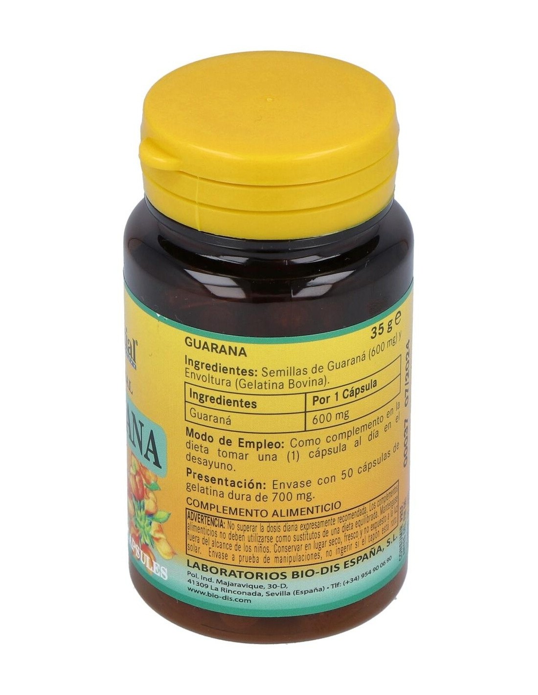 Suplemento alimenticio basado en extracto de Guaraná (Paullinia cupana) en formato de cápsulas de gelatina dura. El producto facilita diversos beneficios: Disminución de la sensación de fatiga y cansancio, promueve la circulación y el riego sanguíneo, ayudar a fortalecer las funciones cognitivas, siendo ideal para estimular la memoria, la concentración, etc. Las ricas propiedades del extracto resultan ideales para el organismo ya que promueve y estimula el correcto funcionamiento de la circulación y el cerebro. Advertencia de usos: No recomendado en mujeres embarazadas o bien en periodo de lactancia.