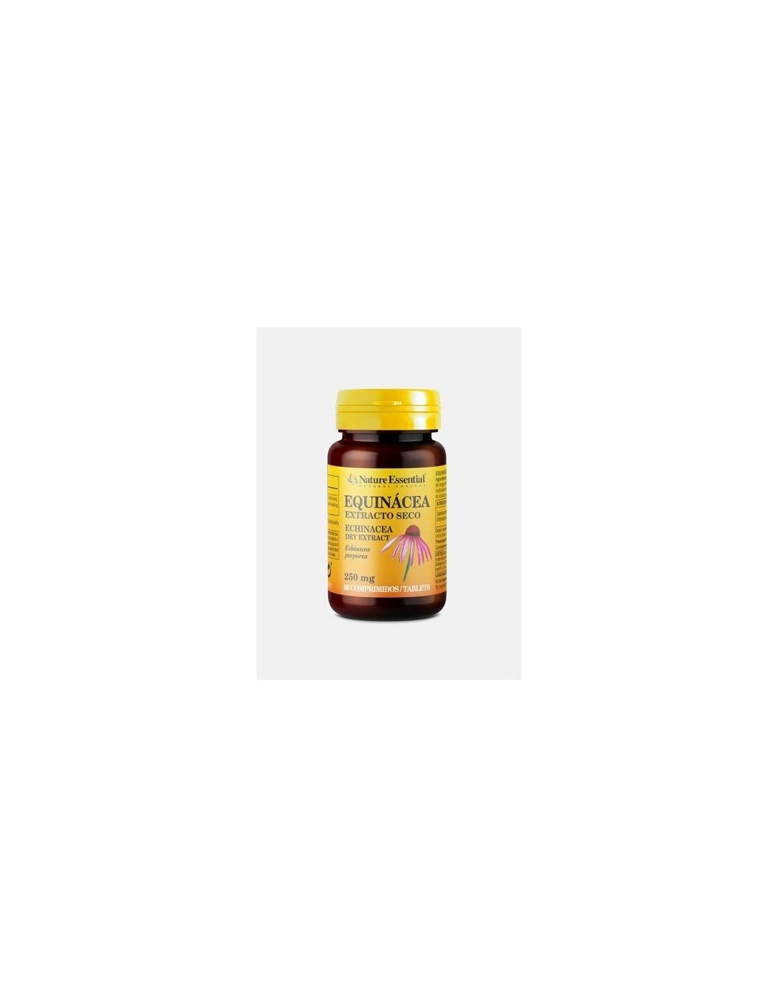 NATURE ESSENTIALComplemento alimenticio a base de extracto seco de echinácea, de apoyo a las defensas del organismo. No contiene gluten, ni lactosa.