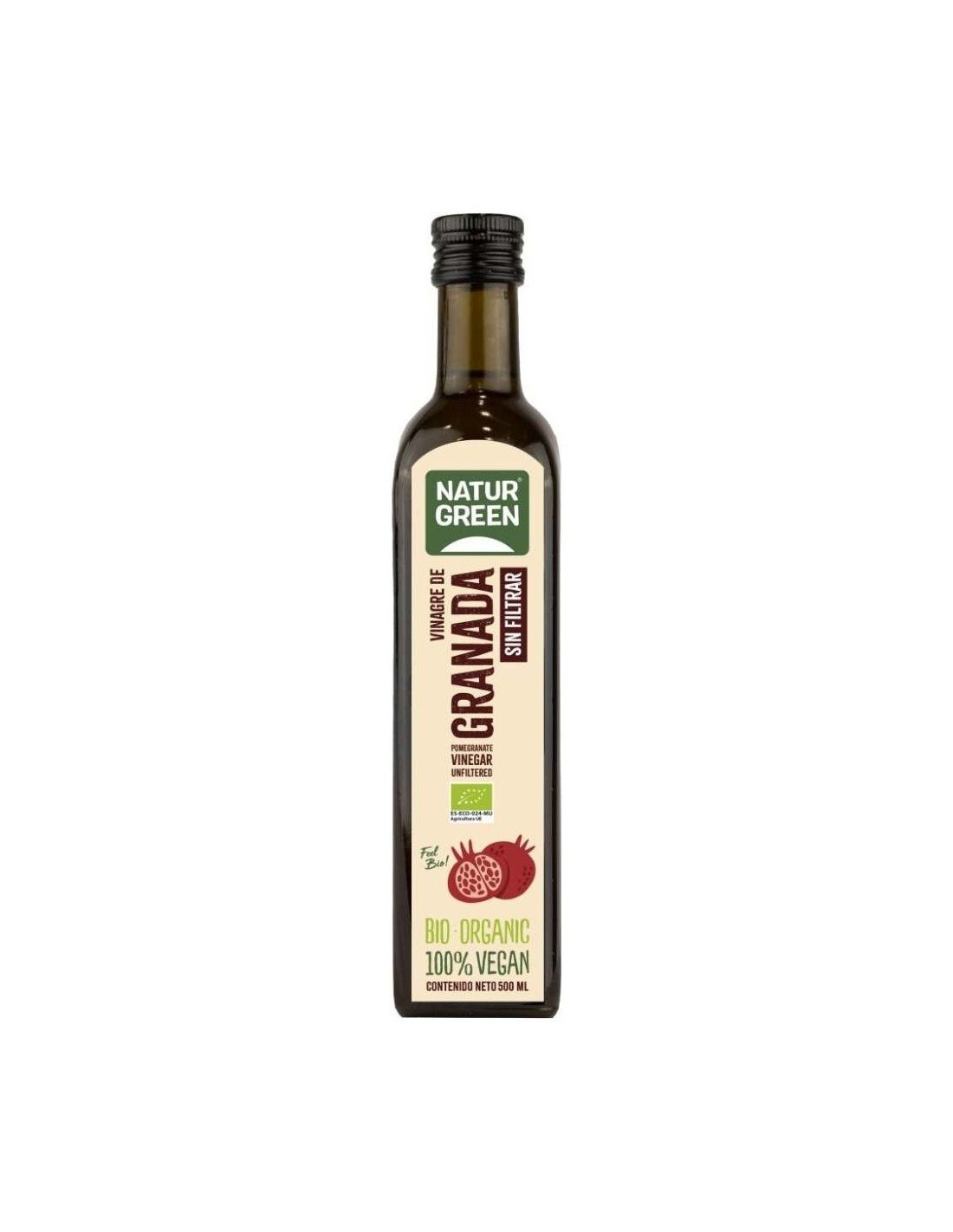 NATURGREENVinagre de granada ecológica sin filtrar. 100% vegetal.