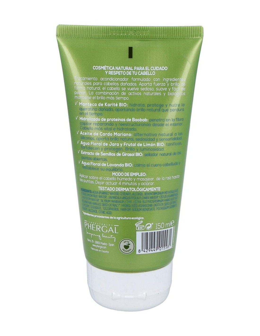 Su fórmula con ingredientes de origen natural como la manteca de karité, el aceite de cardo marino, agua floral de jara y lavanda, agua frutal de limón y agua de extracto girasol. Contribuyen a hidratar, proteger y nutrir la queratina dañada, aportando brillo de forma natural. Además de tonificar y contribuir al sellado de las puntas abiertas de forma efectiva. Y contribuir a calmar el cuero cabelludo evitando picores e irritaciones.