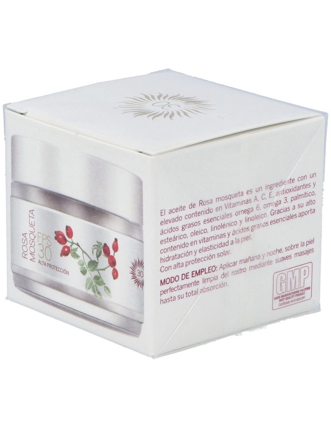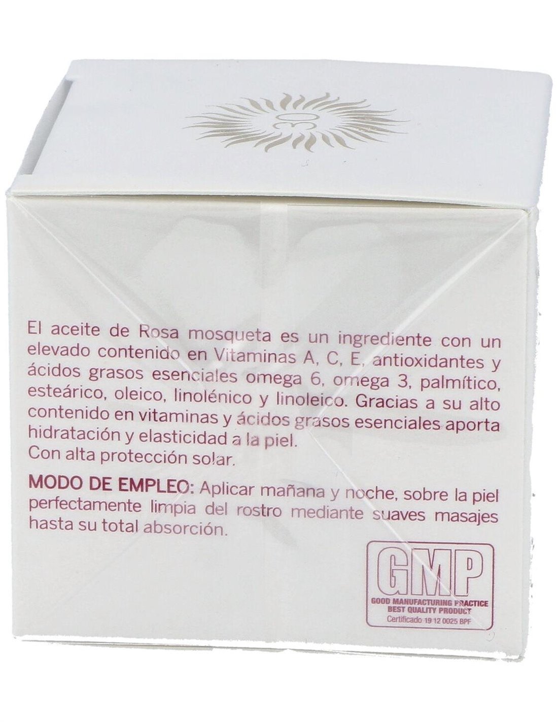 Crema facial de uso diario que contribuye a mantener la piel sana e hidratada. Elaborado a base de aceite de rosa mosqueta con filtros de protección solar. Tiene propiedades hidratantes, emolientes y regeneradoras. Contribuye a suavizar y regenerar la piel, deja un tacto aterciopelado. Es un antiarrugas natural que ayuda a potenciar las fibras de colágeno. Favorece la prevención de la flacidez cutánea y a retrasar la aparición de arrugas. Dermatológicamente probada con ingredientes naturales. Indicada para todo tipo de pieles.
