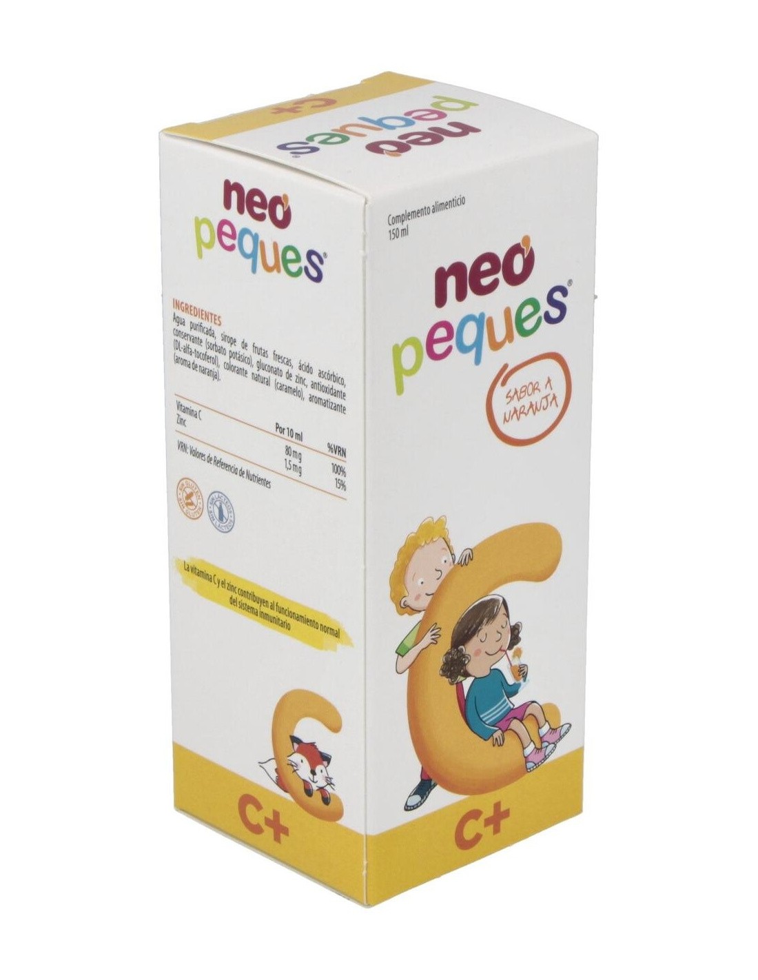 NEOA base de Vitamina C y Zinc que contribuyen al funcionamiento normal del sistema inmunitario. Contiene sirope de frutas, de agradable sabor a naranja e índice glucémico bajo, que permite ser administrado en niños diabéticos.