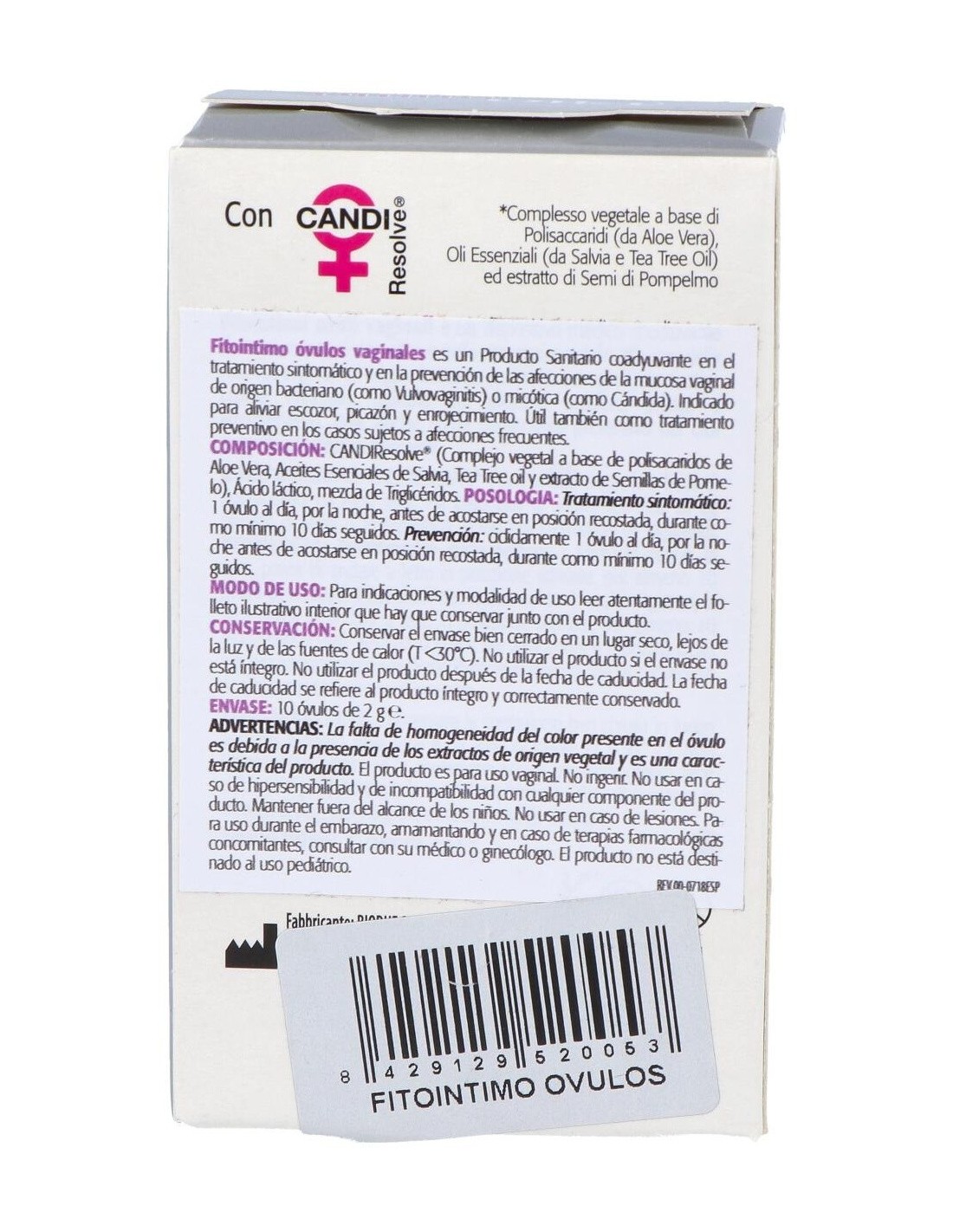 Tratamiento vaginal en formato óvulos, indicado para prevenir infecciones bacterianas de la mucosa vaginal o candidiasis vaginal. Su fórmula a base de ingredientes vegetales como polisacáridos de aloe vera, aceites esenciales de salvia, aceite de árbol de té y extracto de semillas de pomelo, contribuyen a aliviar el escozor, picazón y enrojecimiento de la zona íntima femenina.