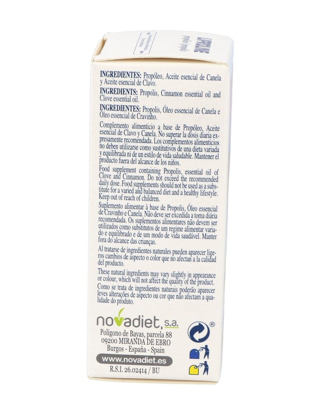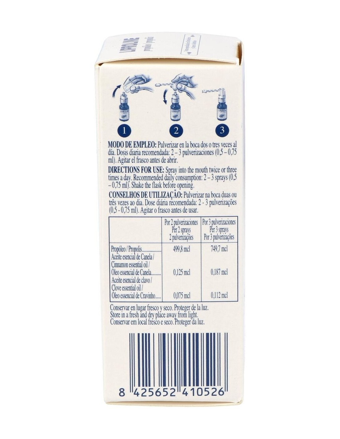 Propóleo, Aceite esencial de Canela, Aceite esencial de Clavo.
