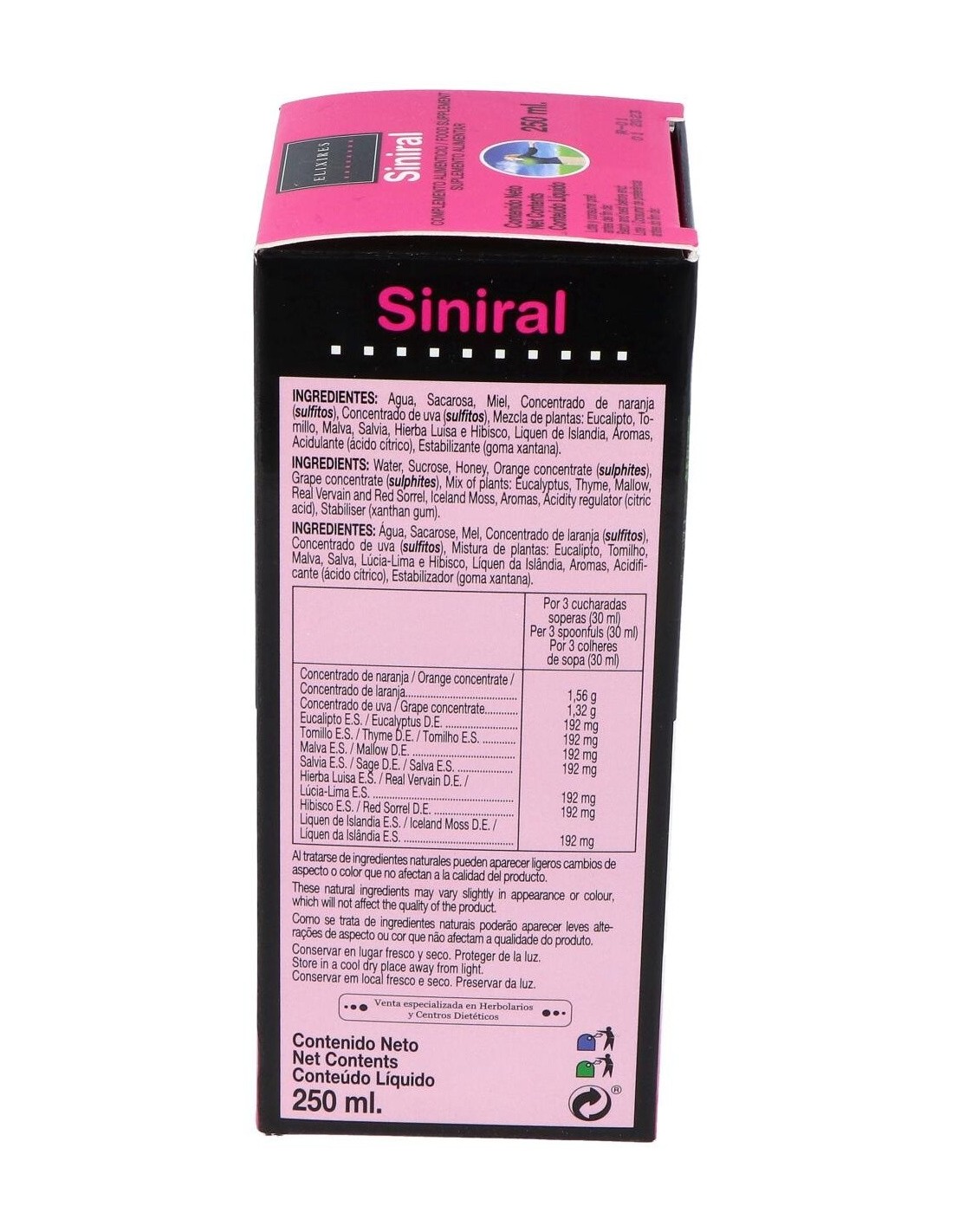 Agua, Sacarosa, Miel, Concentrado de naranja (sulfitos), Concentrado de uva (sulfitos), Mezcla de plantas: Eucalipto, Tomillo, Malva, Salvia, Hierba Luisa e Hibisco, Liquen de Islandia, Aromas, Acidulante (ácido cítrico), Estabilizante (goma xantana).