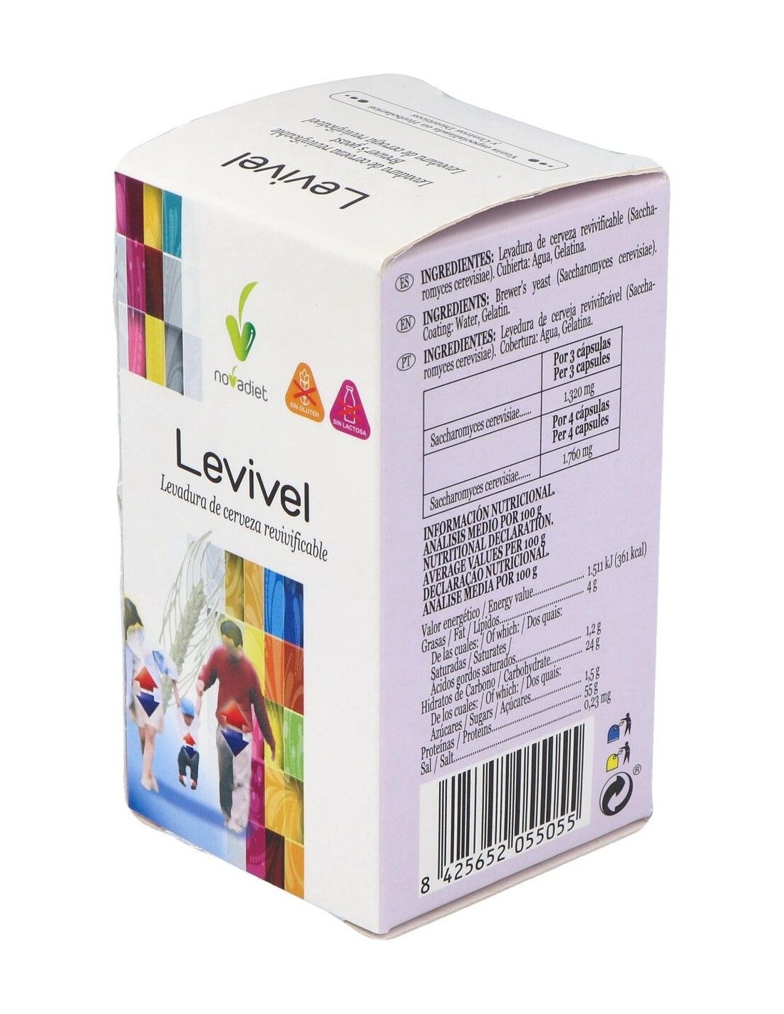 NOVADIETLas cápsulas Novadiet Levivel ayudan a mantener un correcto funcionamiento del intestino, ayudándonos a mantener la flora intestinal y, gracias a ello, ayudando a que nuestro cuerpo funcione de forma correcta. La levadura de cerveza también nos ayudará a tener un cabello abundante y suave y a que nuestras uñas sea mantengan fuertes y no se rompan con facilidad.