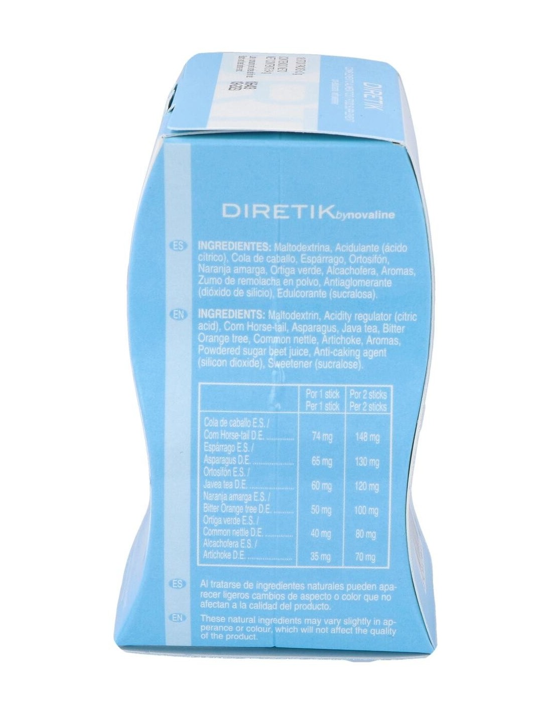 Maltodextrina, Acidulante (ácido cítrico), Cola de caballo (e.s. estandarizado al 7% en silicio), Espárrago (e.s. 2-5:1, estandarizado en esparragina >0,5%), Ortosifón (e.s. estandarizado en sinensetina >0,1%), Naranja amarga (e.s.), Ortiga verde (e.s.), Alcachofera (e.s. estandarizado en cinarina 2,0-2,4%), Aromas, Zumo de remolacha en polvo, Antiaglomerante (dióxido de silicio), Edulcorante (sucralosa).