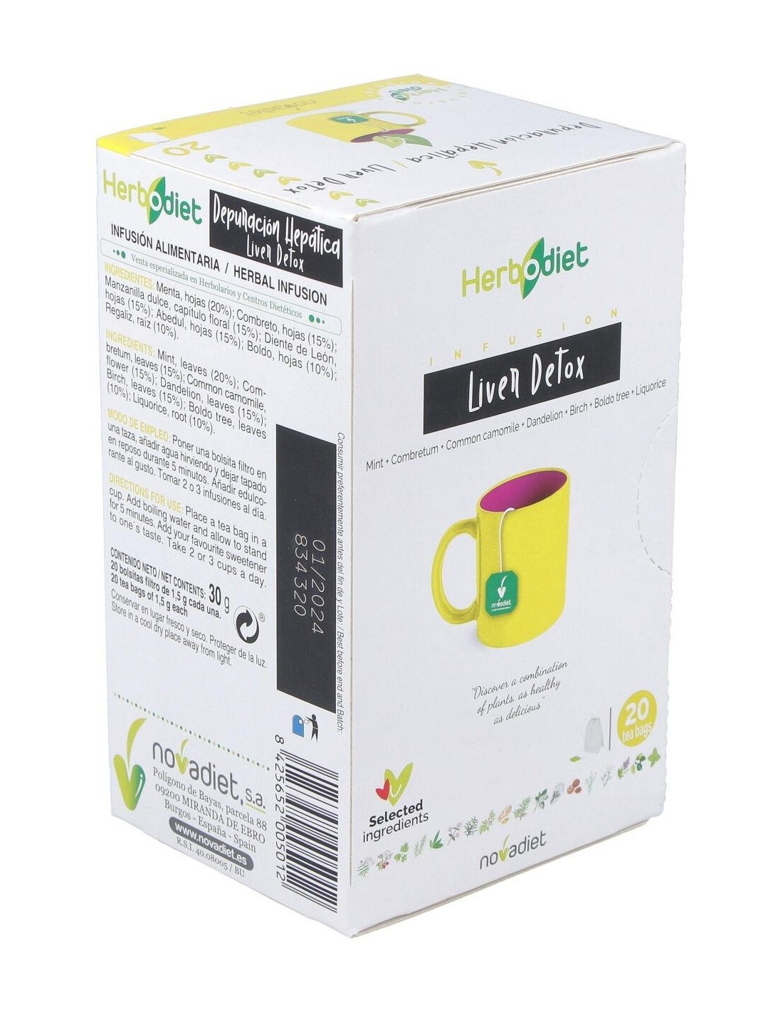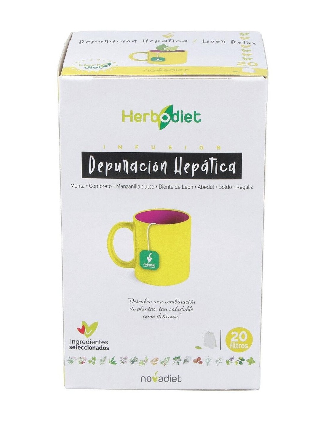 Infusión de plantas depurativas y diuréticas que ayuda a mejorar el funcionamiento del hígado y vesícula biliar, y la buena digestión. Esta mezcla contiene diente de león que ayuda al hígado a depurar, especialmente a los hígados que sean perezosos, ya que es capaz de aumentar de entre 2 a 4 veces la secreción de la bilis, menta, combreto, boldo, manzanilla dulce,abedul y regaliz que son unas buenas depuradoras del hígado. Los complementos alimenticios deben ir acompañados con una dieta equilibrada y un estilo de vida saludable.