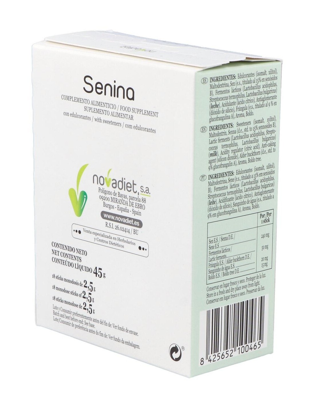 Los sticks Novadiet Senina, gracias a su fórmula, ayudan a la correcta evacuación de nuestro sistema digestivo, evitando el molesto estreñimiento y sus consecuencias cuando no se trata a tiempo, ayudándonos a sentir menos sensación de pesadez e hinchazón.