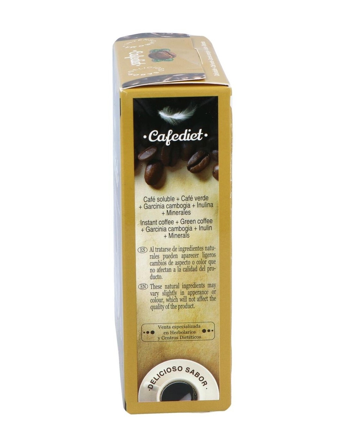 Café soluble, Maltodextrina, Garcinia cambogia (E.S. titulado al 60% en ácido hidroxicítrico), Café verde (E.S., titulado al 45% en ácido clorogénico), Inulina, Aroma, Gluconato de zinc, Antiaglomerante (dióxido de silicio), Picolinato de cromo.