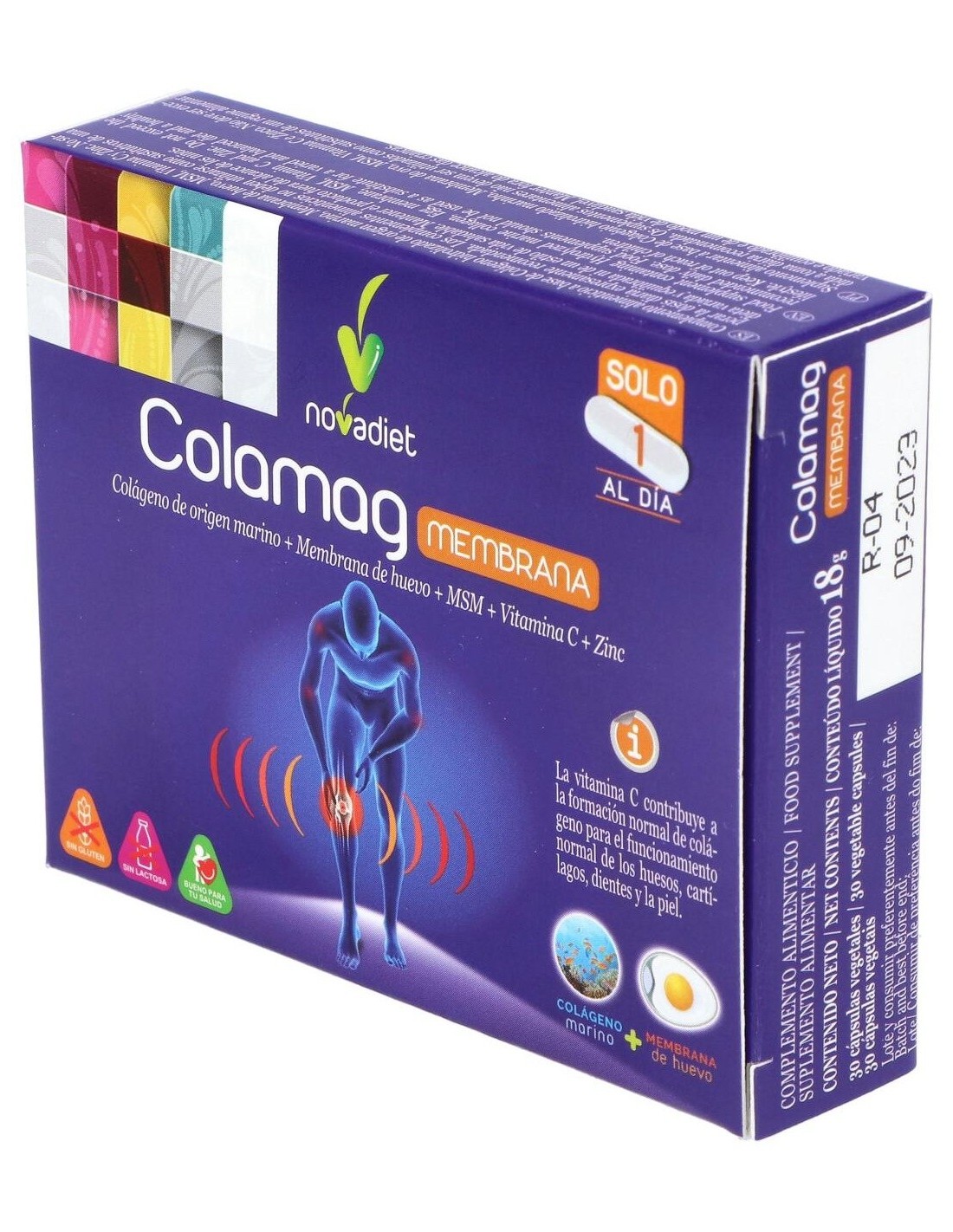 Las cápsulas Novadiet Colamag Membrana son el aliado indicado para ayudarnos a mantener huesos, articulaciones, ligamentos y músculos en perfecto estado, evitando el desgaste y los dolores que causa el paso del tiempo. Su fórmula también ayudará a mantener una piel de aspecto más joven.