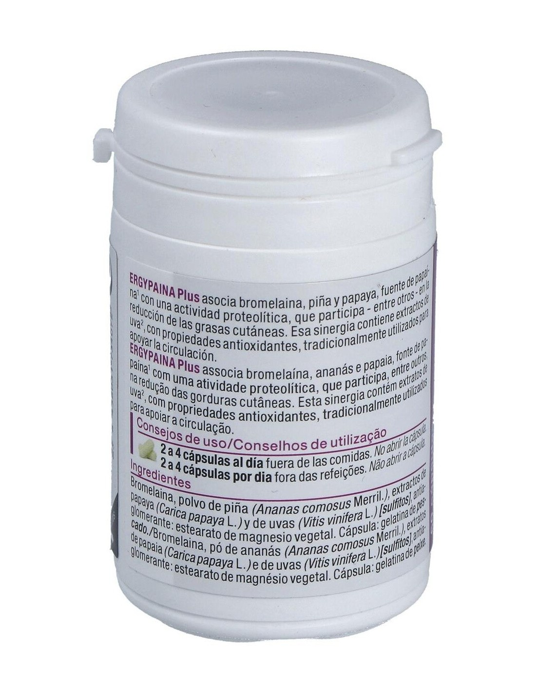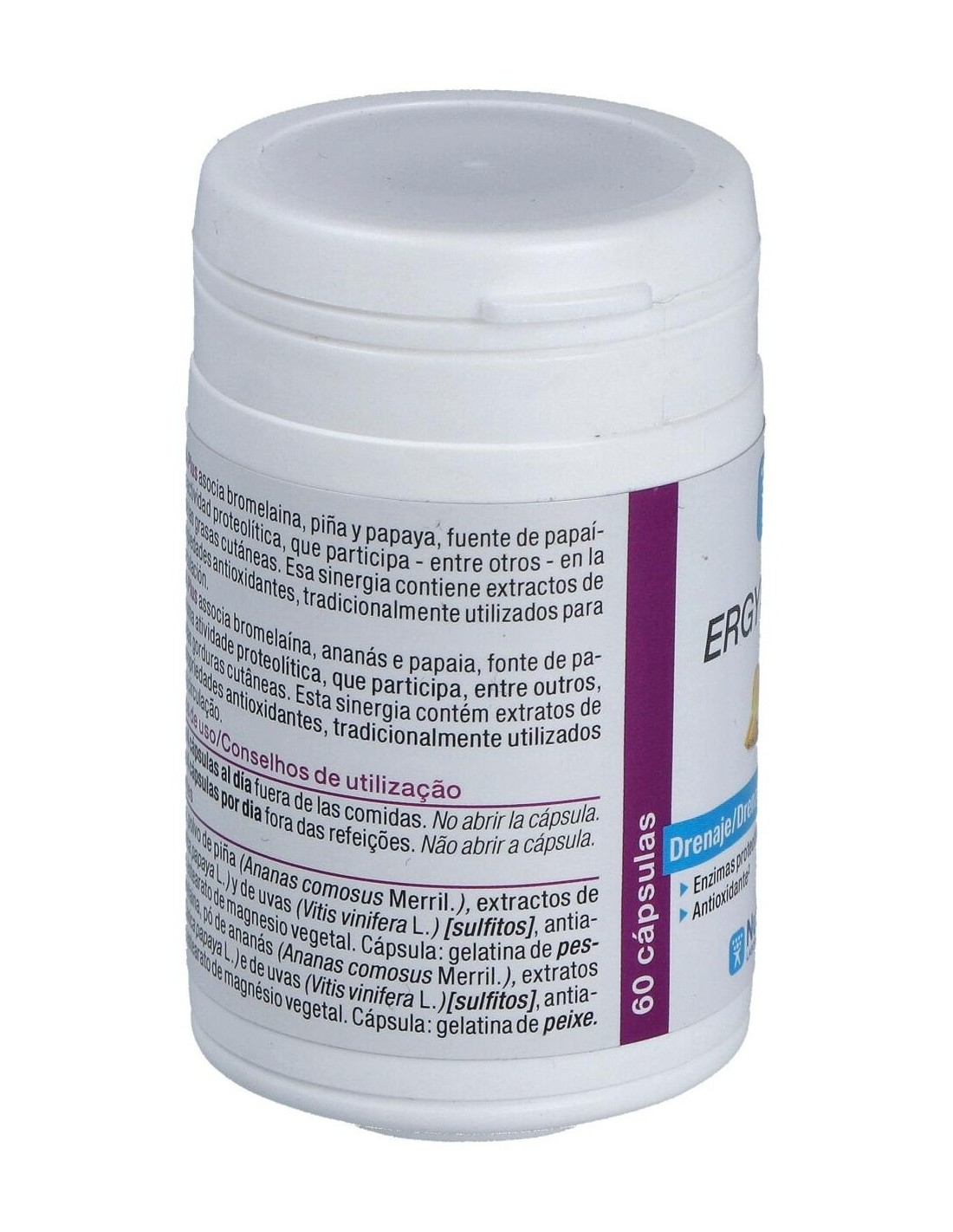Asocia un extracto de Papaya (cuya actividad proteolítica está reconocida), con polifenoles de uva. Un extracto de piña, que aporta bromelaina, completa esta fórmula.