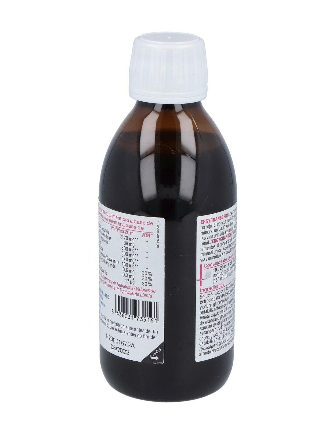Ergy Cranberryl es un jarabe realizado a base de arándano rojo, hibisco, brezo, cola de caballo y enriquecido con oligoelementos. Con él, ayudarás a reducir la fijación de bacterias en tus vías urinarias y favorecerás la eliminación de líquidos.