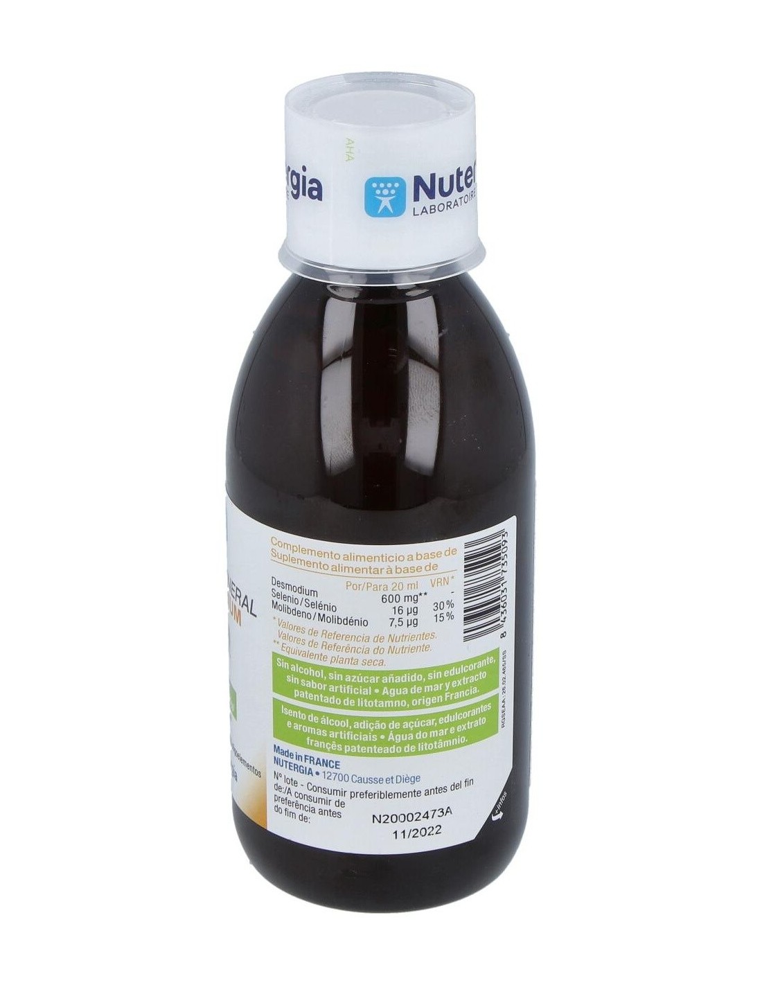 Complejo mineral : filtrado de agua arcillosa enriquecido en minerales y oligoelementos marinos, Complejo fito-aromatizante : extracto de desmodium ascendens, glicerina natural, sorbato de potasio, ácido láctico.