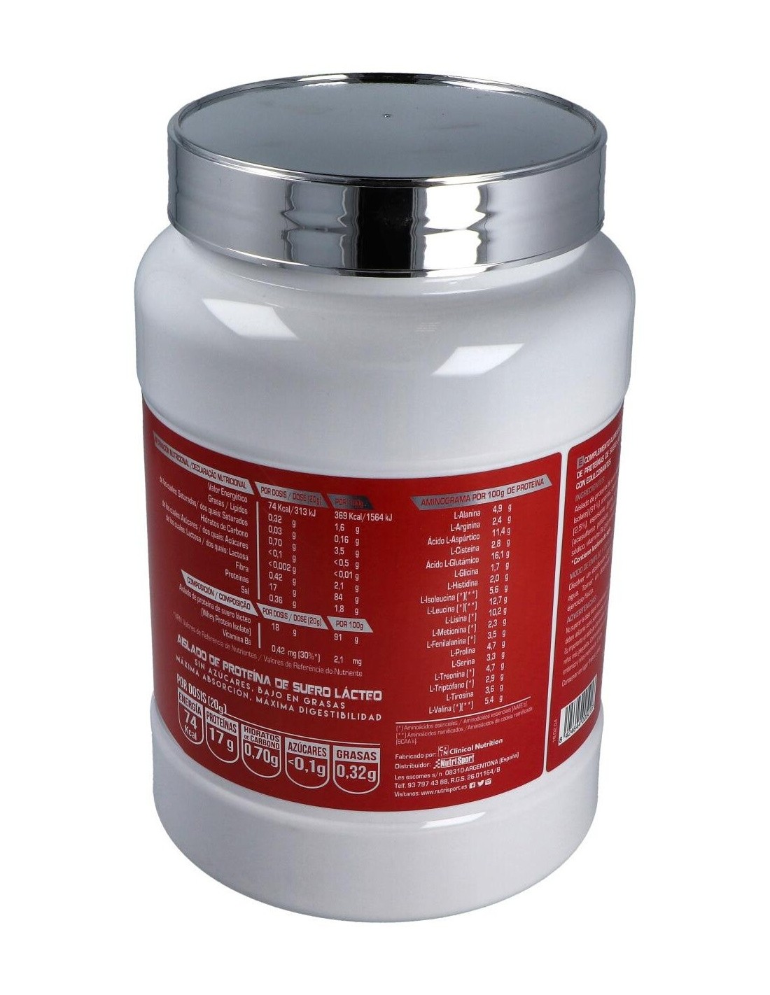 Complemento alimenticio a base de proteína pura (Whey Protein Isolate) perfecto para aquellas personas que quieran ganar masa muscular sin añadir calorías a su dieta ya que está libre de grasas y azúcares, ayudando a la formación y conservación de los músculos y al mantenimiento sano de los huesos. Sabor chocolate.