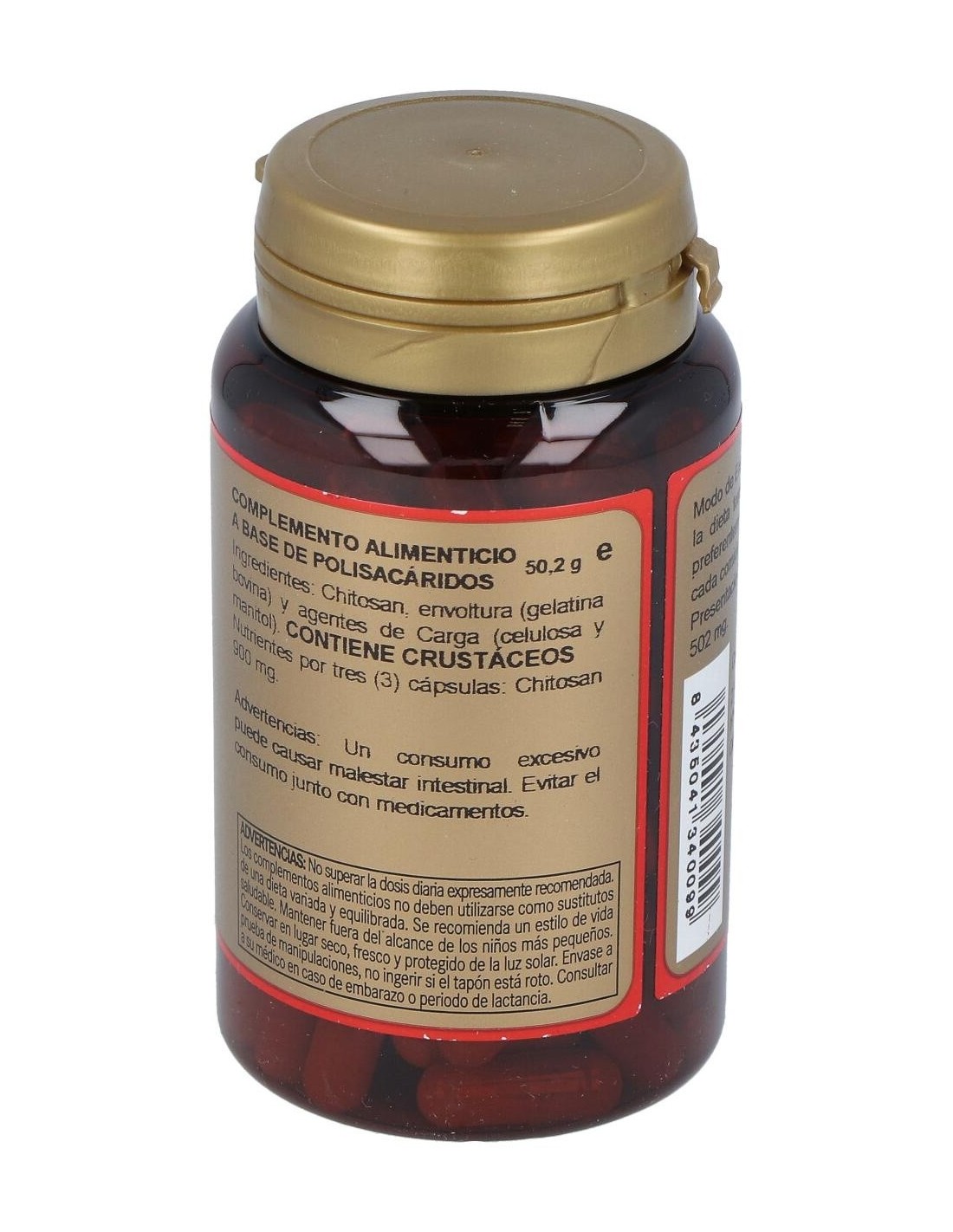 CHITOSÁN (300 MG), EXCIPIENTES (CELULOSA MOCROCRISTALINA Y MANITOL) Y GELATINA.