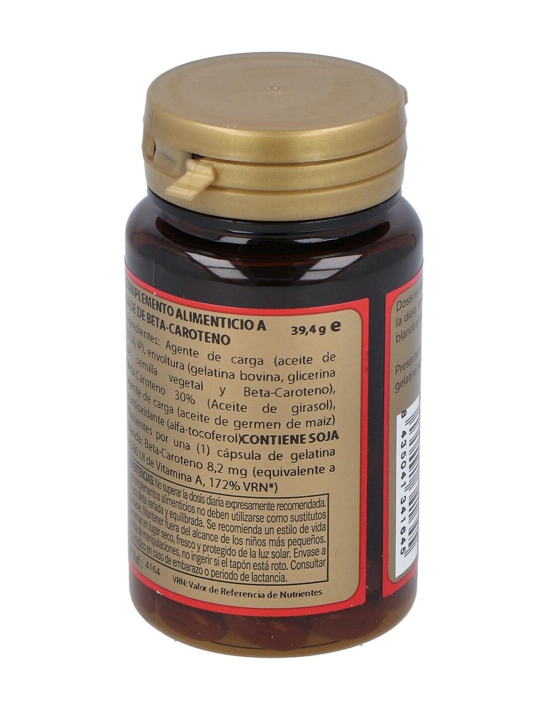 Complemento alimenticio formulado a base de betacaroteno, nutriente rico en vitamina A, C y E. Contribuye al mantenimiento normal de la piel y de la función ocular. El betacaroteno ejerce una acción beneficiosa sobre el proceso de bronceado y la capacidad cognitiva. Indicado para adultos. No apto en caso de embarazo o lactancia.
