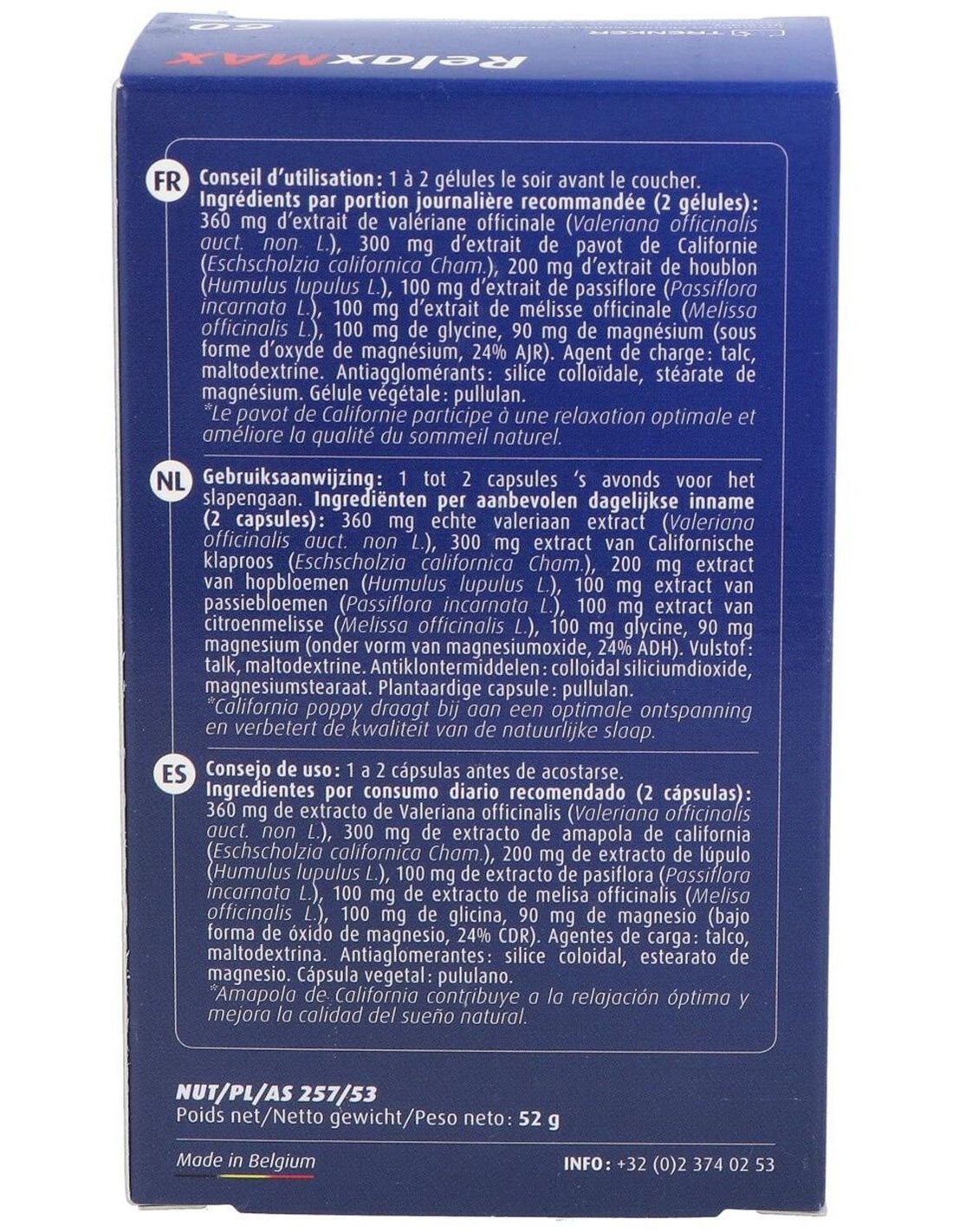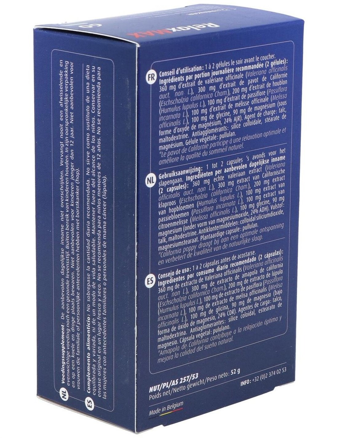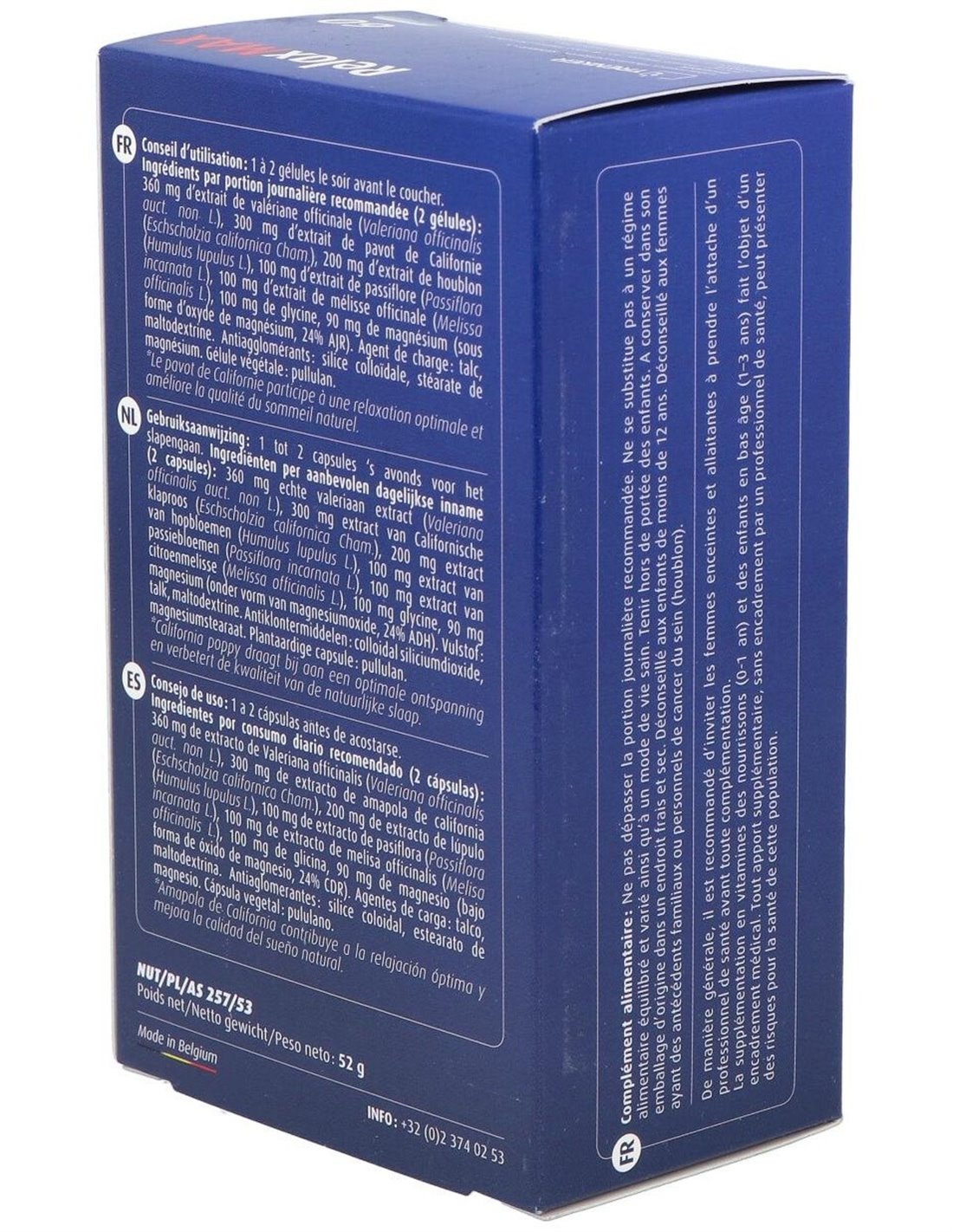 Suplemento con plantas a las que tradicinalmente se asocian propiedades relajantes como la valeriana. El magnesio contribuye al normal funcionamiento del sistema nervioso.