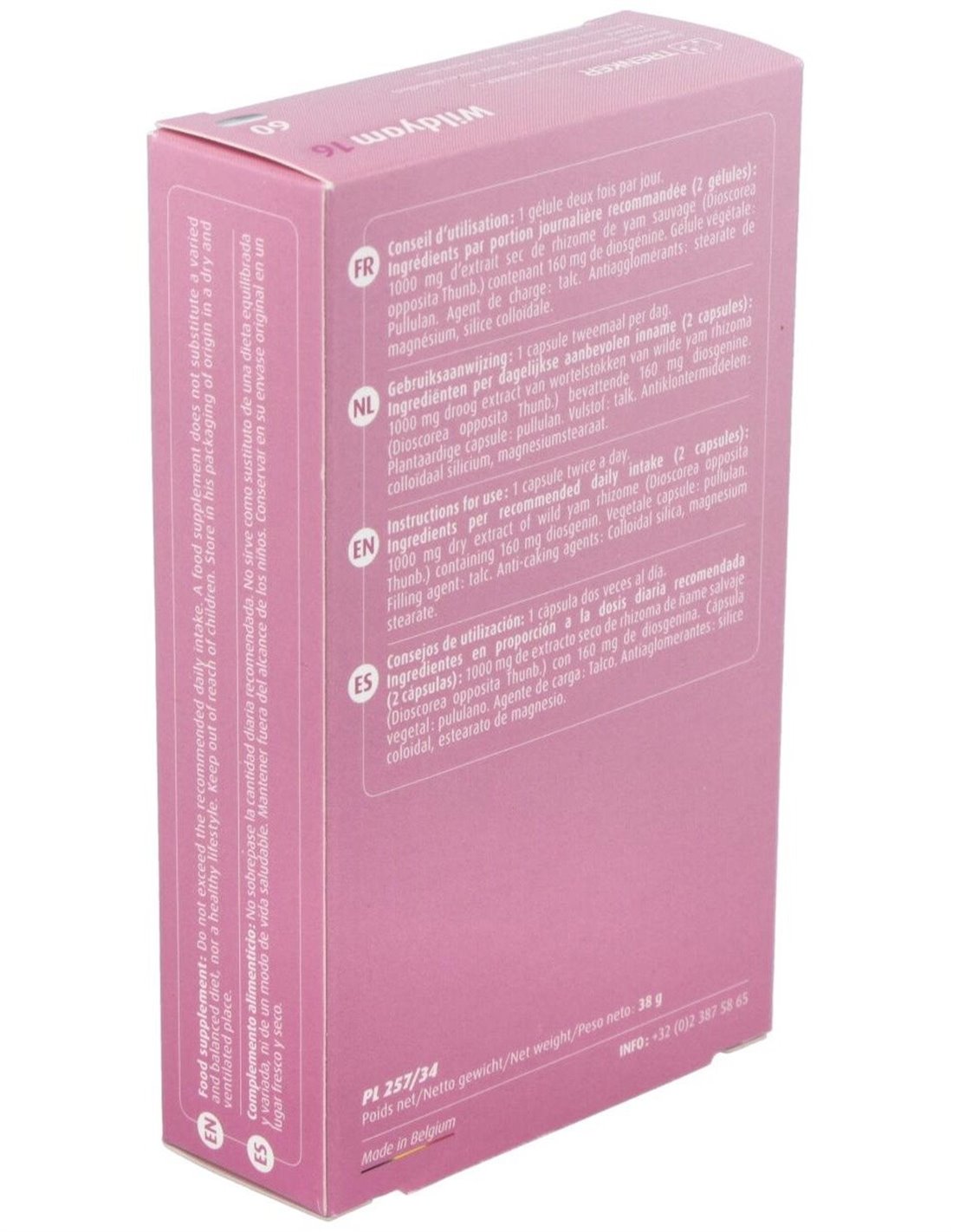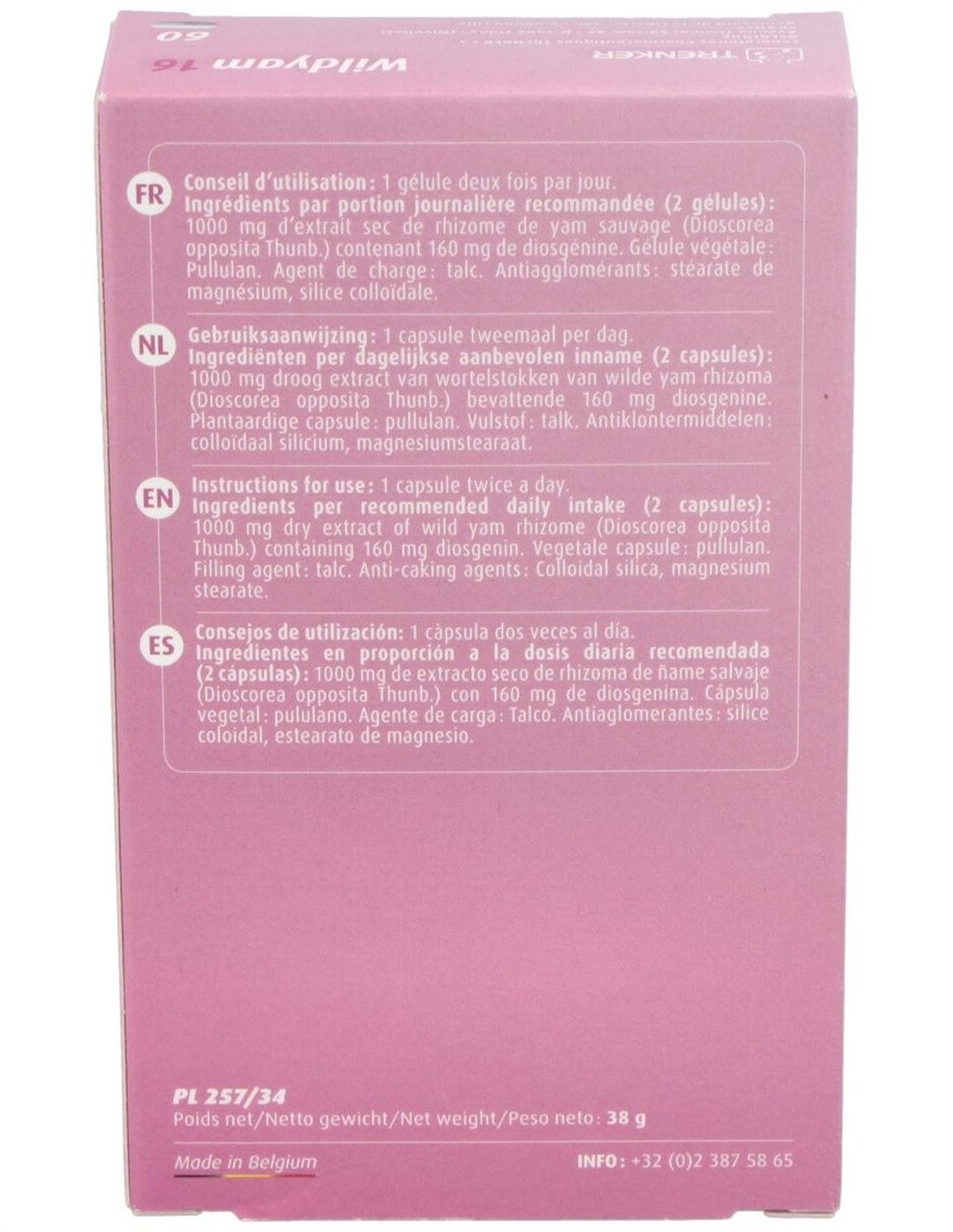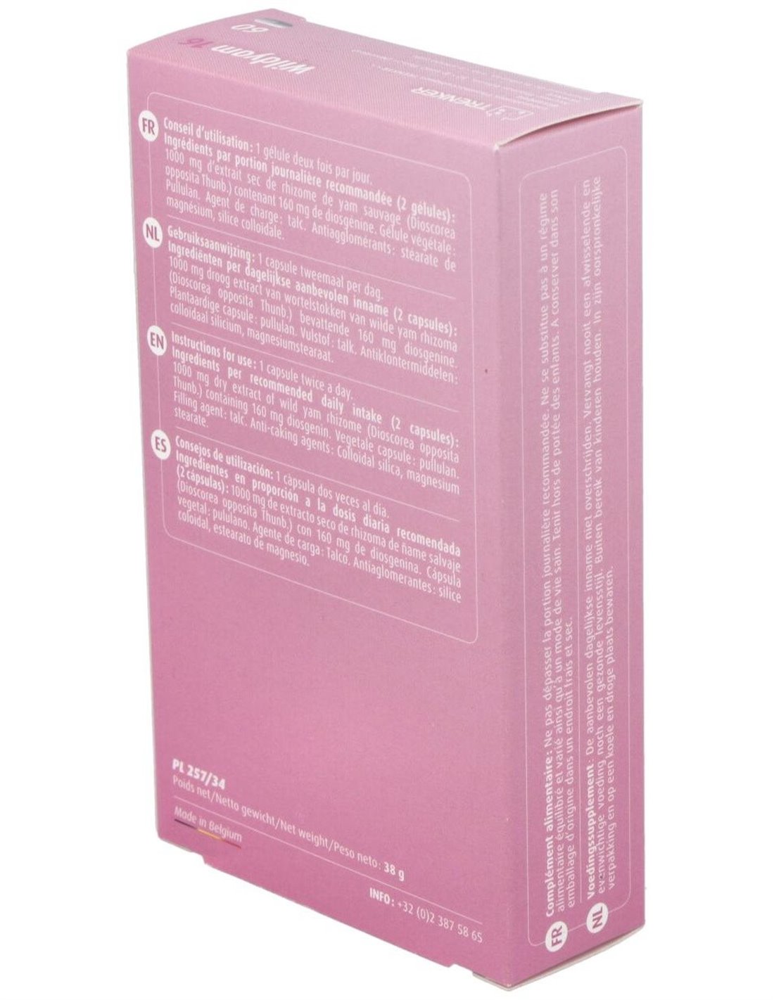 500 mg Extracto de raíces (bulbo) de Wild Yam (Dioscorea villosa, conteniendo 80 mg de diosgenina).