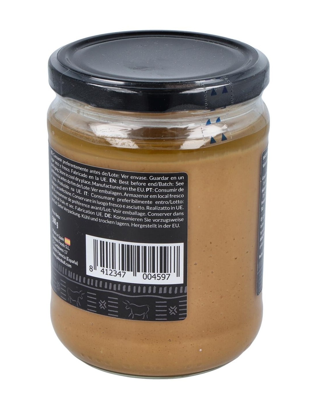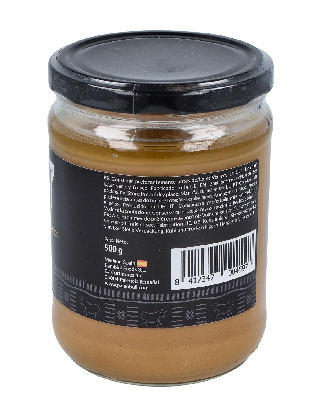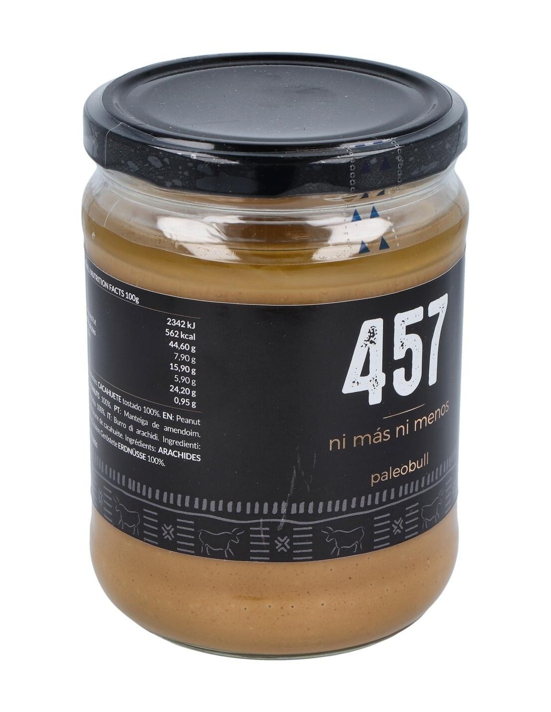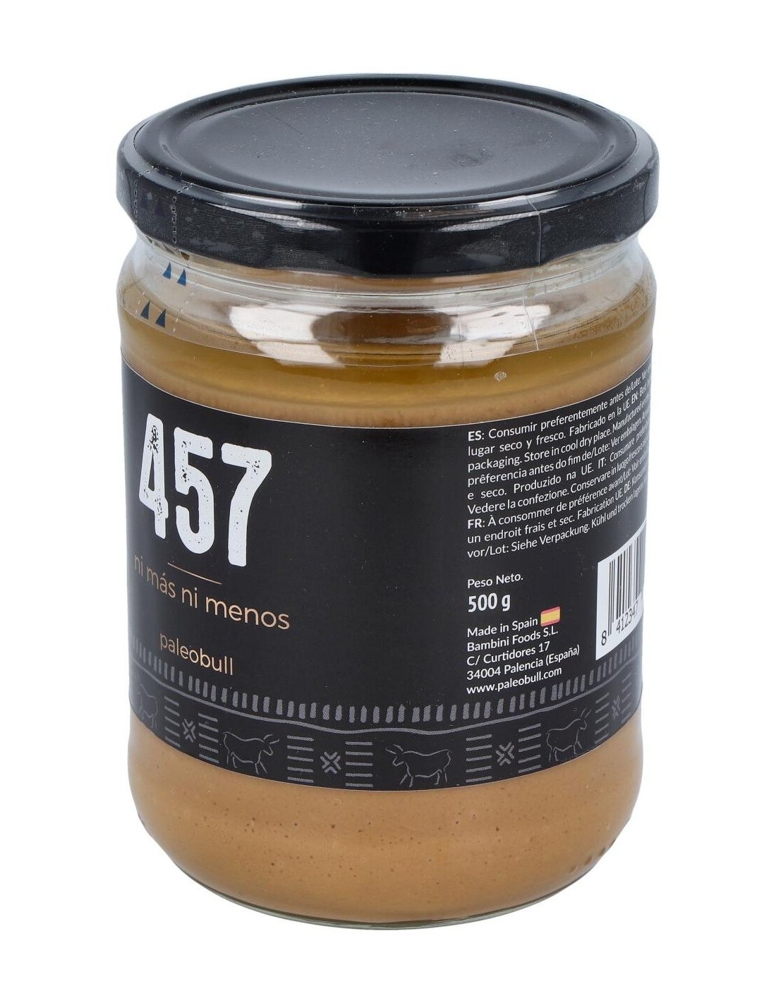 PALEOBULLResultado de tostar y triturar 457 cacahuetes en cada tarro. Sin aditivos artificiales, sin aceite de palma, sin azúcar y sin sal.