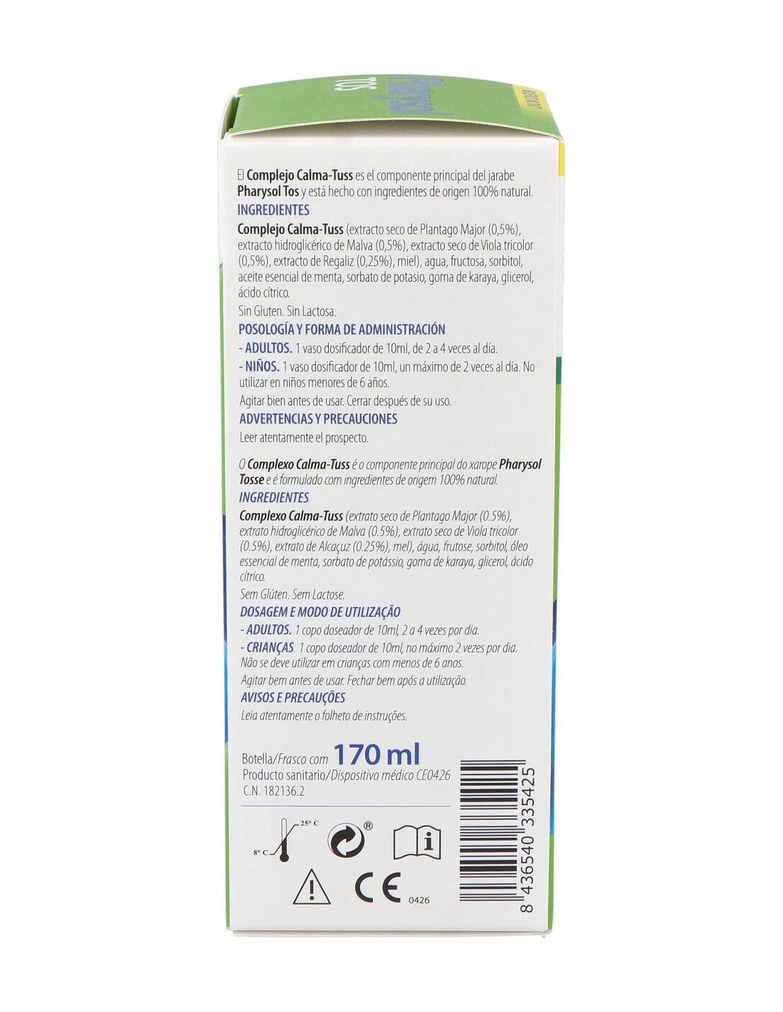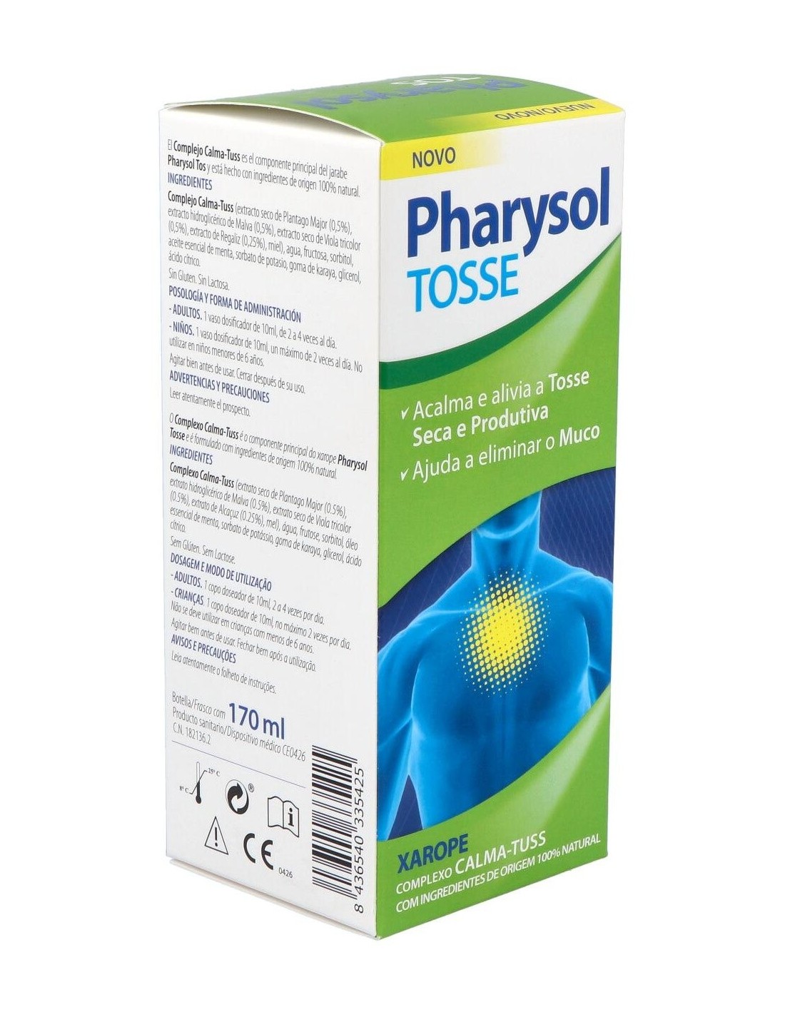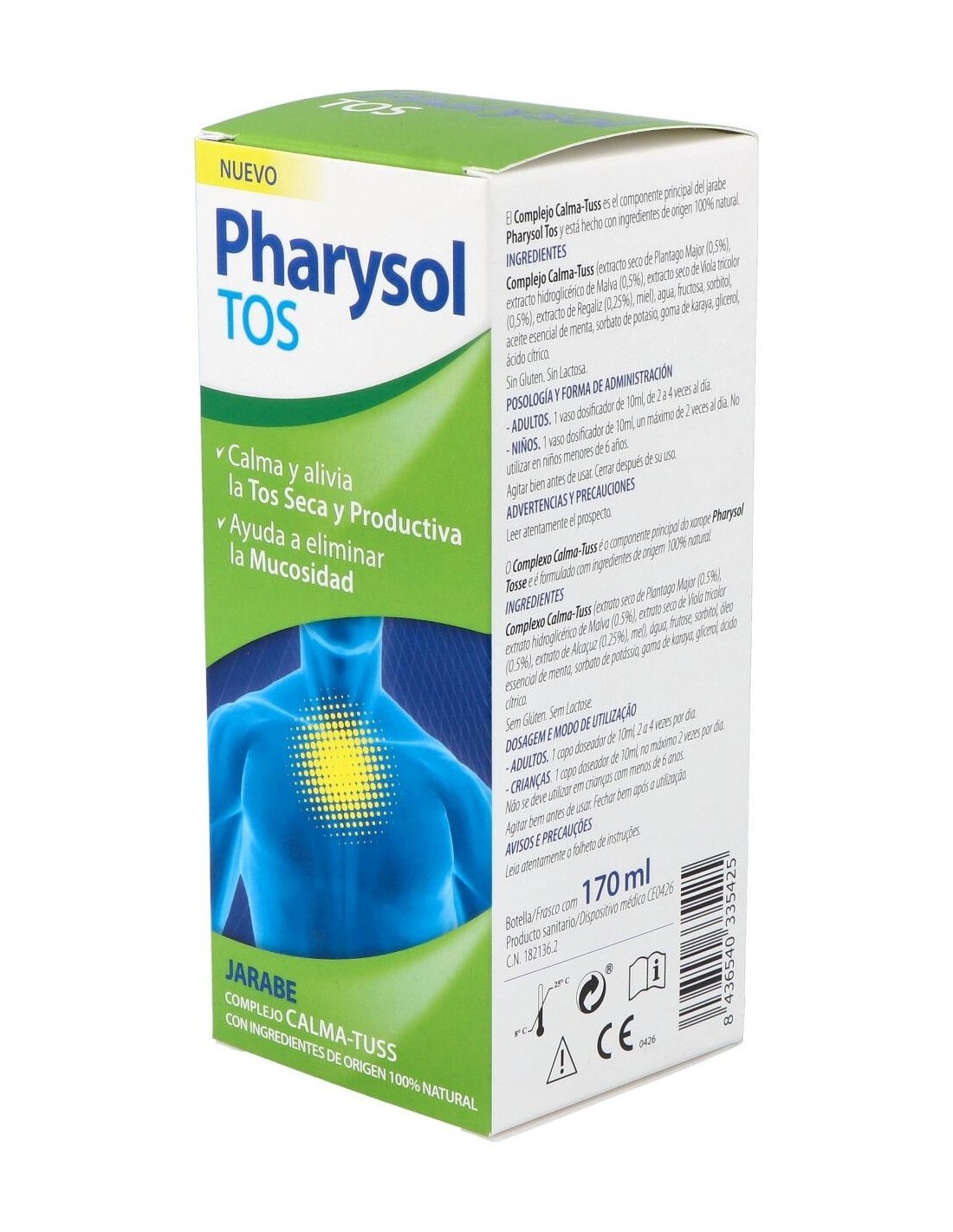 Pharysol Tos jarabe 170ml es un jarabe formulado para calmar la tos seca o tos productiva. Indicado para personas con la garganta afectada por las bajas temperaturas, especialmente en casos donde se presente dolor e irritación. Elaborado con ingredientes 100% naturales, ejerce una acción expectorante que ayuda a expulsar los mocos y combate la tos.