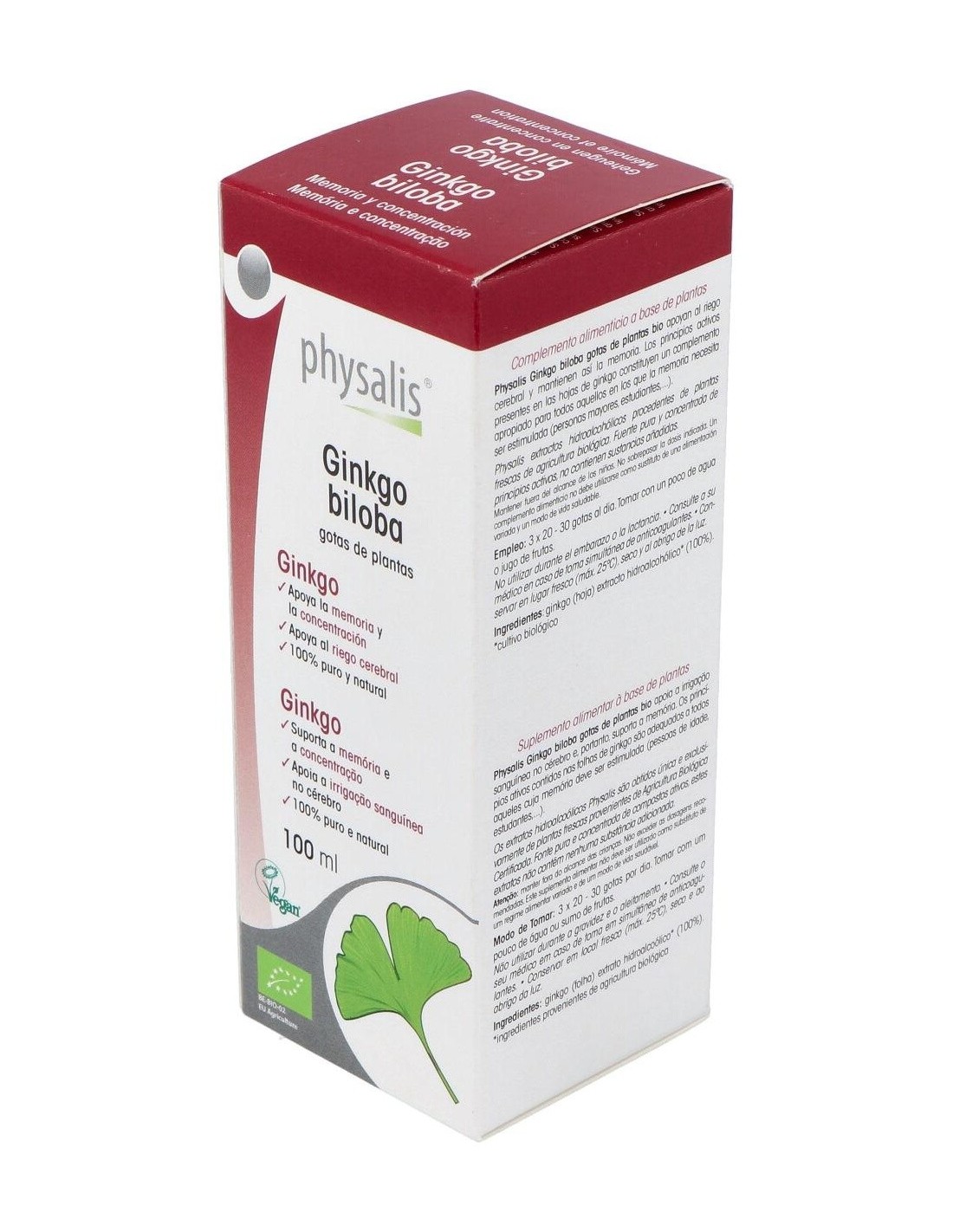 PHYSALISComplemento alimenticio a base de plantas que apoya al riego cerebral y mantiene así la memoria. Los principios activos presentes en las hojas de ginkgo constituyen un complemento apropiado para todos aquellos en los que la memoria necesita ser estimulada.