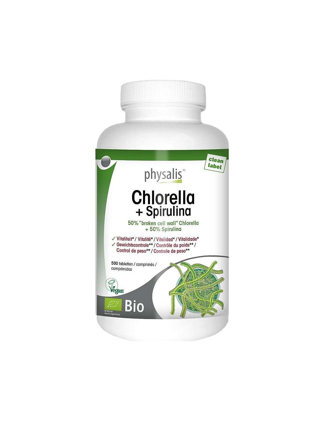Chlorella+Spirulina 500Comp. Bio de Physalis