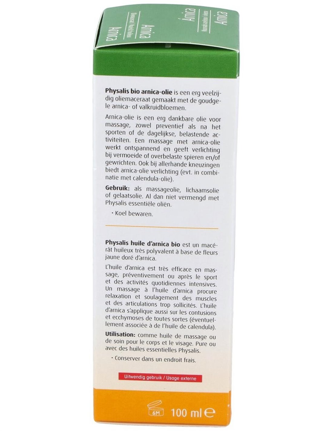 PHYSALISEl aceite de árnica es perfecto para masajes, tanto preventivamente como después del deporte o actividades diarias intensivas. Un masaje con aceite de árnica relaja y alivia los músculos y las articulaciones cuando han sufrido una intensa actividad.