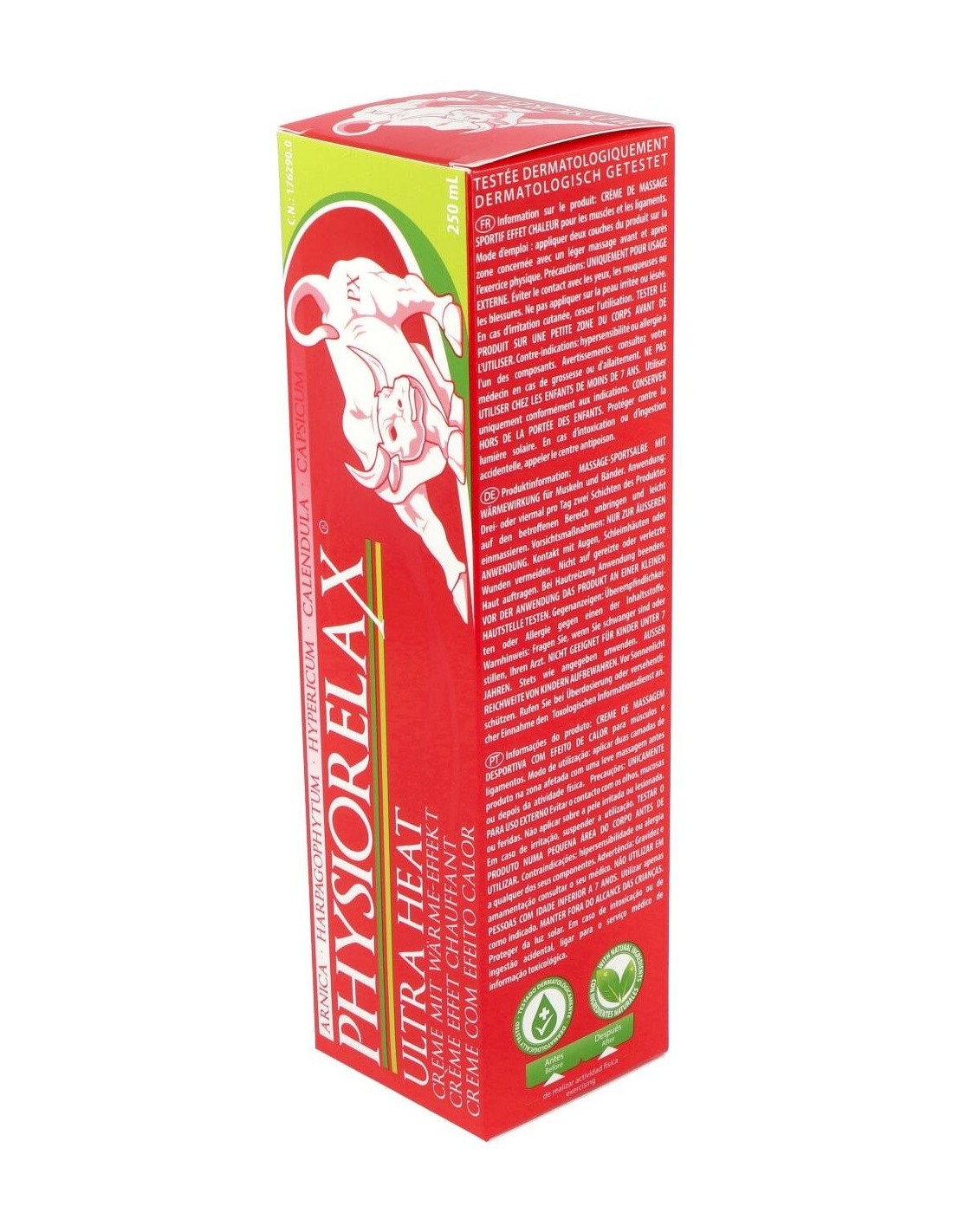 PHYSIORELAXCrema de masaje con una completa fórmula que prepara, protege y recupera los músculos y ligamentos. Es altamente efectiva tanto en la práctica deportiva como contra la fatiga que genera la actividad cotidiana.