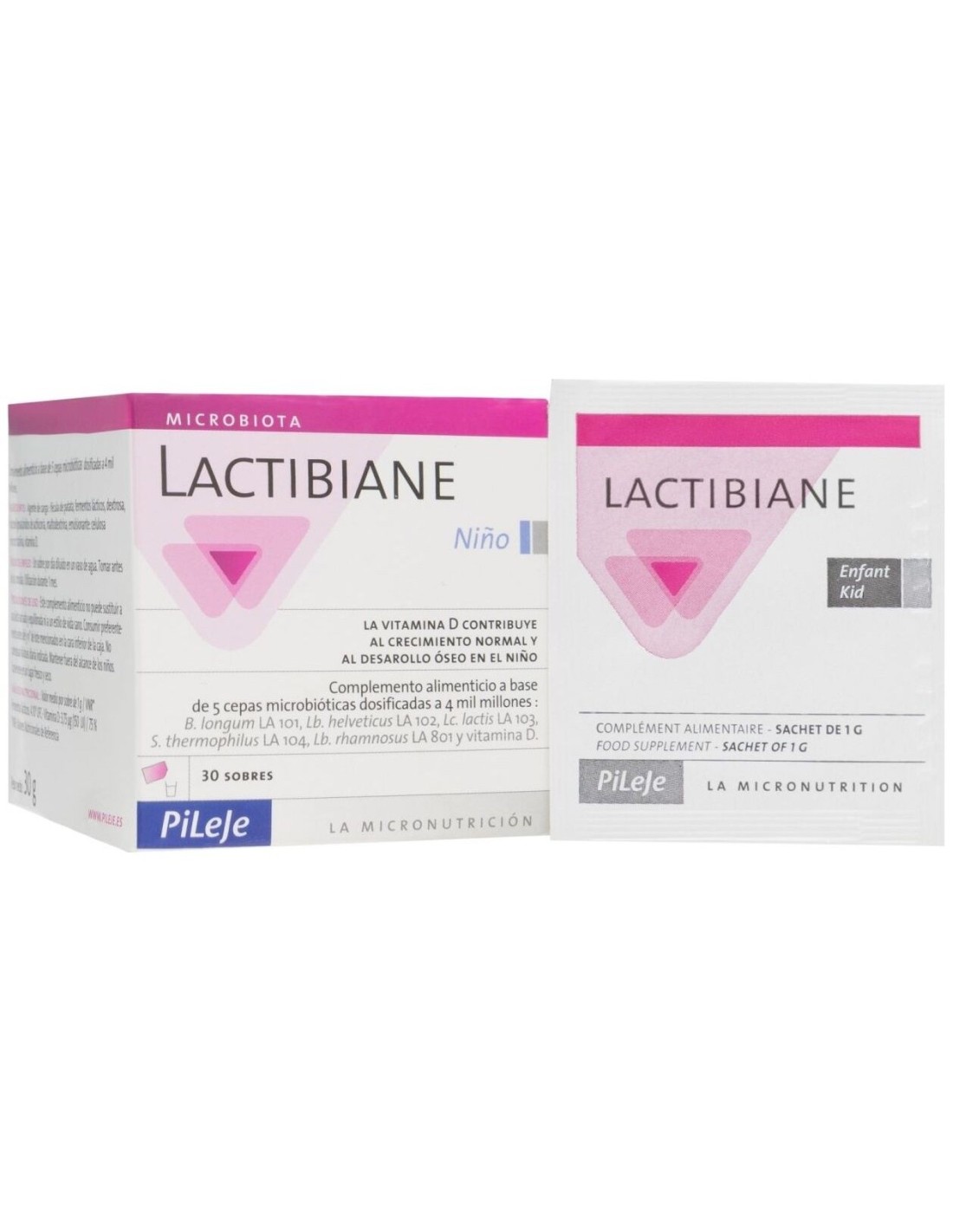 Lactibiane Niño es una solución rica en 5 cepas microbióticas lácticas dofisicadas a 4 mil millones que actuarán de forma beneficiosa sobre la flora bacteriana intestinal.