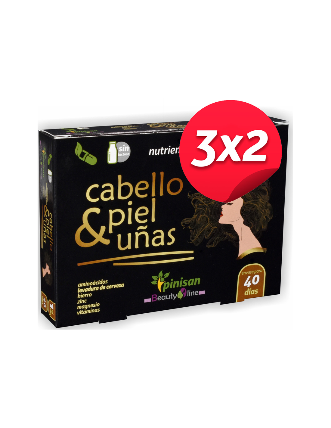 Pack 3x2 Cabello-Piel & Uñas, 40 Cáps. de Pinisan