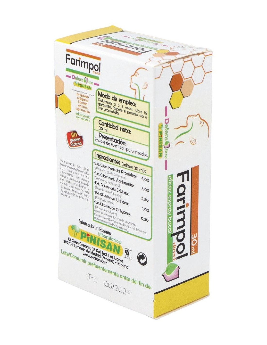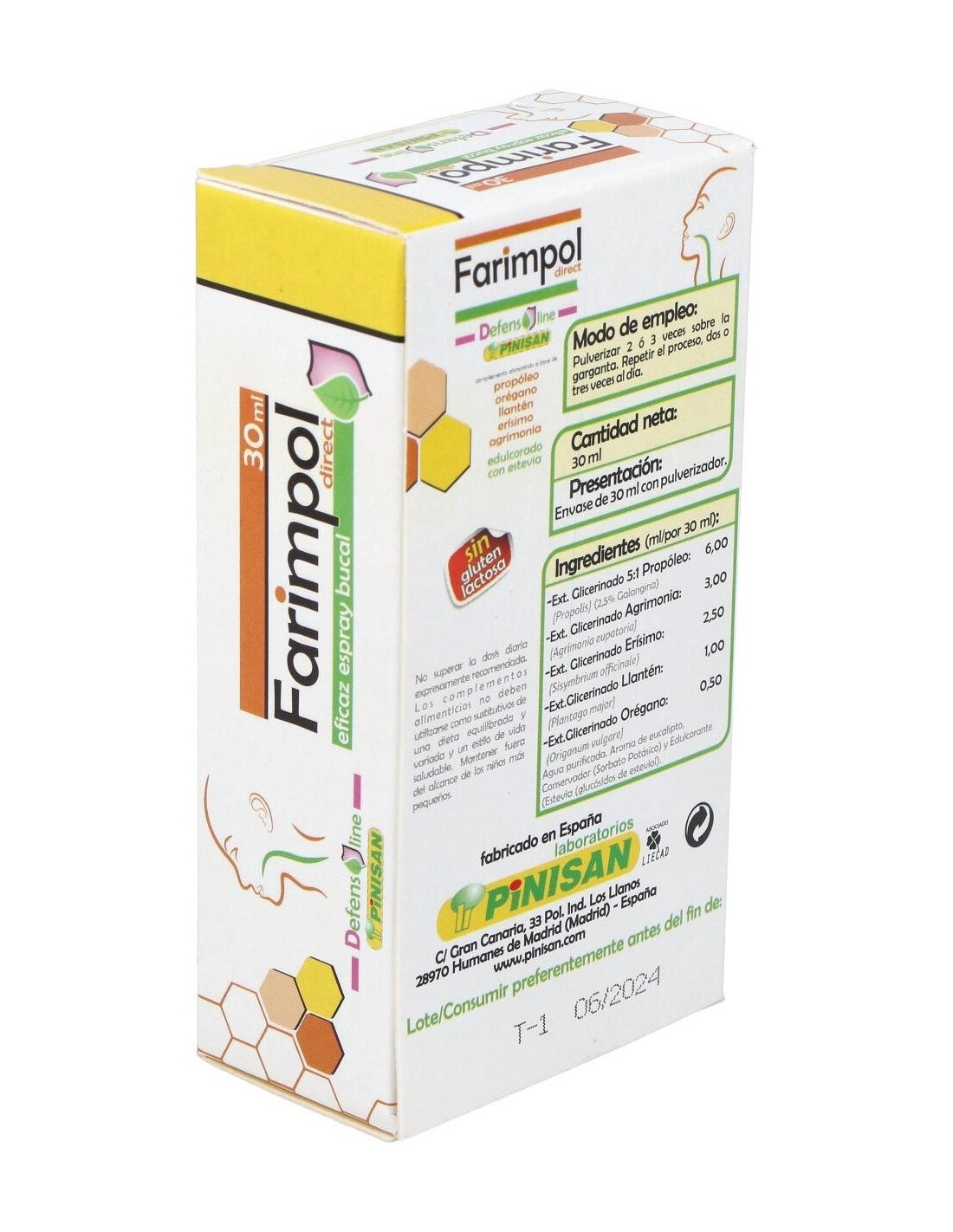 Pinisan Farimpol Direct spray es un eficaz remedio natural para tratar los problemas y afecciones de garganta. Enriquecido con extractos de propóleo, erísimo, agrimonia, llantén y orégano consigue reducir el picor y dolor causado por la irritación en las vías respiratorias.