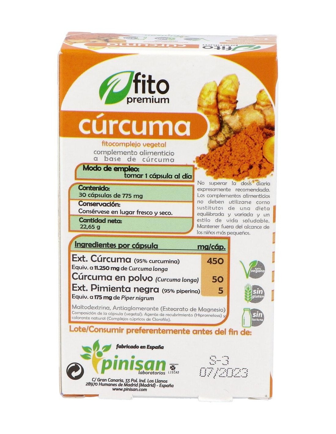 Extracto de cúrcuma (95% curcumina)....450 mg (equivalente a 11.250 mg de curcuma longa)