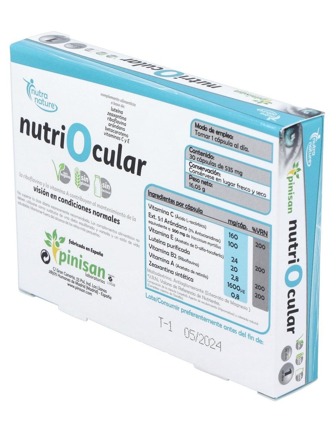 Pinisan Nutriocular es un suplemento nutricional, formulado a base de luteina y zeaxantina, para garantizar una correcta funcionalidad en el sistema ocular. Gracias al aporte de vitaminas A y E, betacaroteno y rivoflavina consigue reparar y proteger tu visión de manera totalmente efectiva e inmediata.