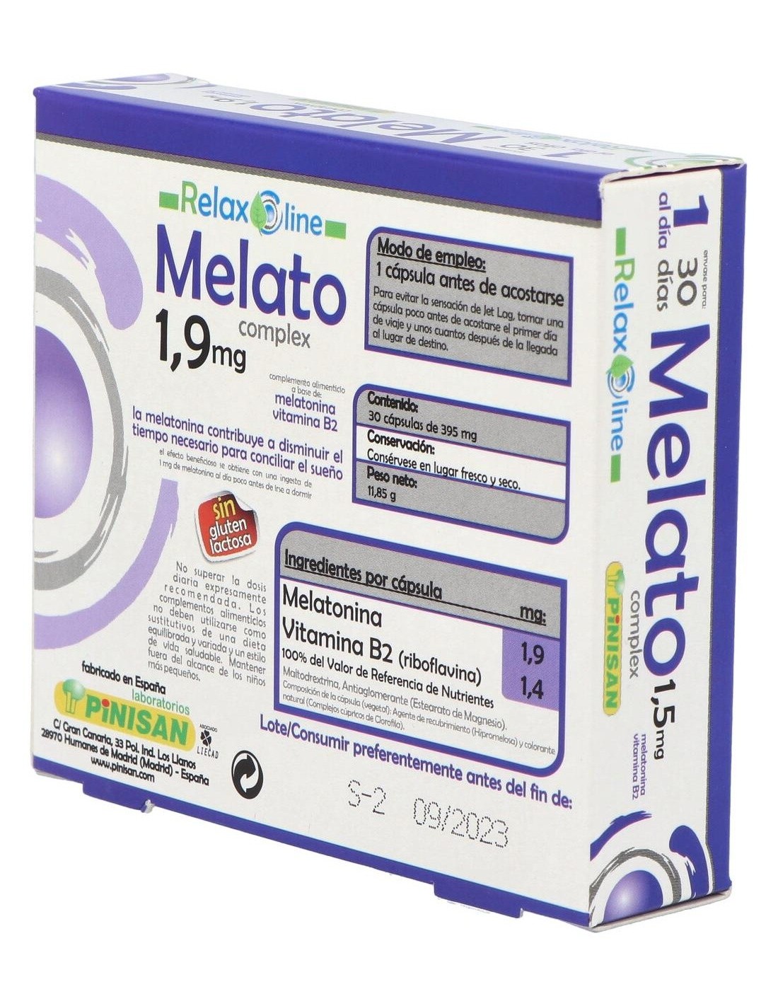 · Complemento alimenticio en formato cápsula, con vitamina B2 y melatonina, que contribuye a disminuir el tiempo necesario para conciliar el sueño. La melatonina es una neurohormona que se produce principalmente en la glándula pineal del cerebro y forma parte del sistema de señales que regulan el ciclo circadiano del sueño-vigilia.