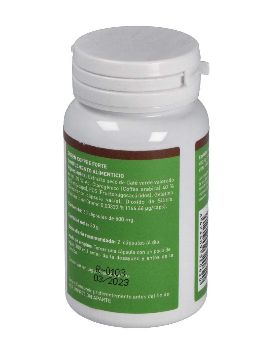 Complemento nutricional idóneo para favorecer la pérdida de peso por su gran poder quemagrasas, diurético y drenante. Elaborado con Café Verde, es el grano del café sin tostar y tiene alto contenido en ácido clorogénico, el cual evita la infiltración de grasa y activa la enzima adenylate cyclose, que es capaz de estimular el metabolismo de los lípidos. Favorece la pérdida de peso al saciar el apetito. Además el ácido clorogénico tiene un efecto beneficioso sobre el metabolismo de la glucosa, ya que se reduce su absorción y disminuye el máximo hiperglucémico, al interferir en la actividad de enzimas digestivas del intestino, aumentando el nivel de azúcares y grasas eliminados. Entre otros muchos más beneficios, además es un excelente antioxidante.