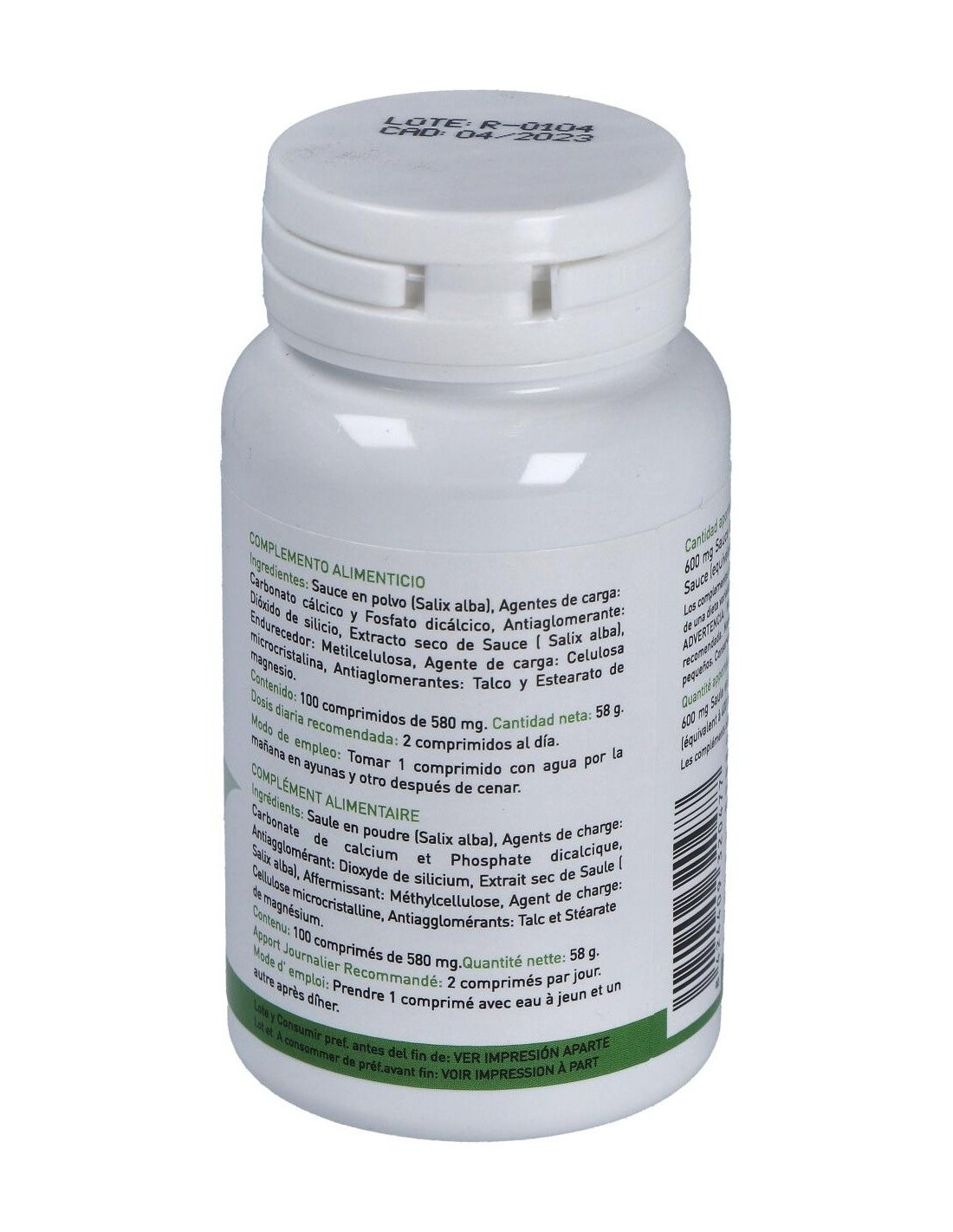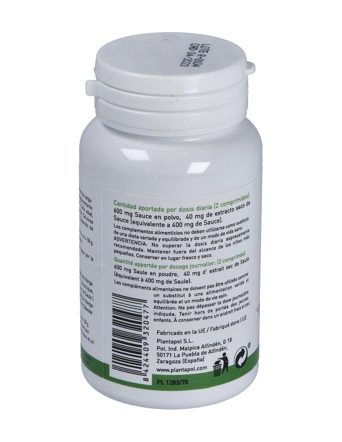 Sauce polvo 800 mg (600 mg de sauce), Extracto seco de sauce 40 mg (equivalente a 200 mg de sauce polvo). Carbonato de Calcio, Fosfato de calcio, Metilcelulosa, Dióxido de silicio, Talco.