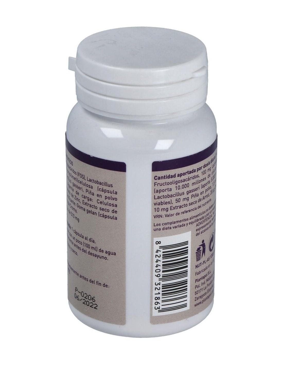 Fructooligosacáridos (FOS), Lactobacillus Rhamnosus, Lactobacillus Gasseri, Oryza sativa, Ananas comosus, Gluconato de Zinc, Picolinato de Cromo., Agente de carga: Celulosa microcristalina, Cápsula envolvente:, Hidroxipropilmetilcelulosa, Gelificante: Goma gelan.