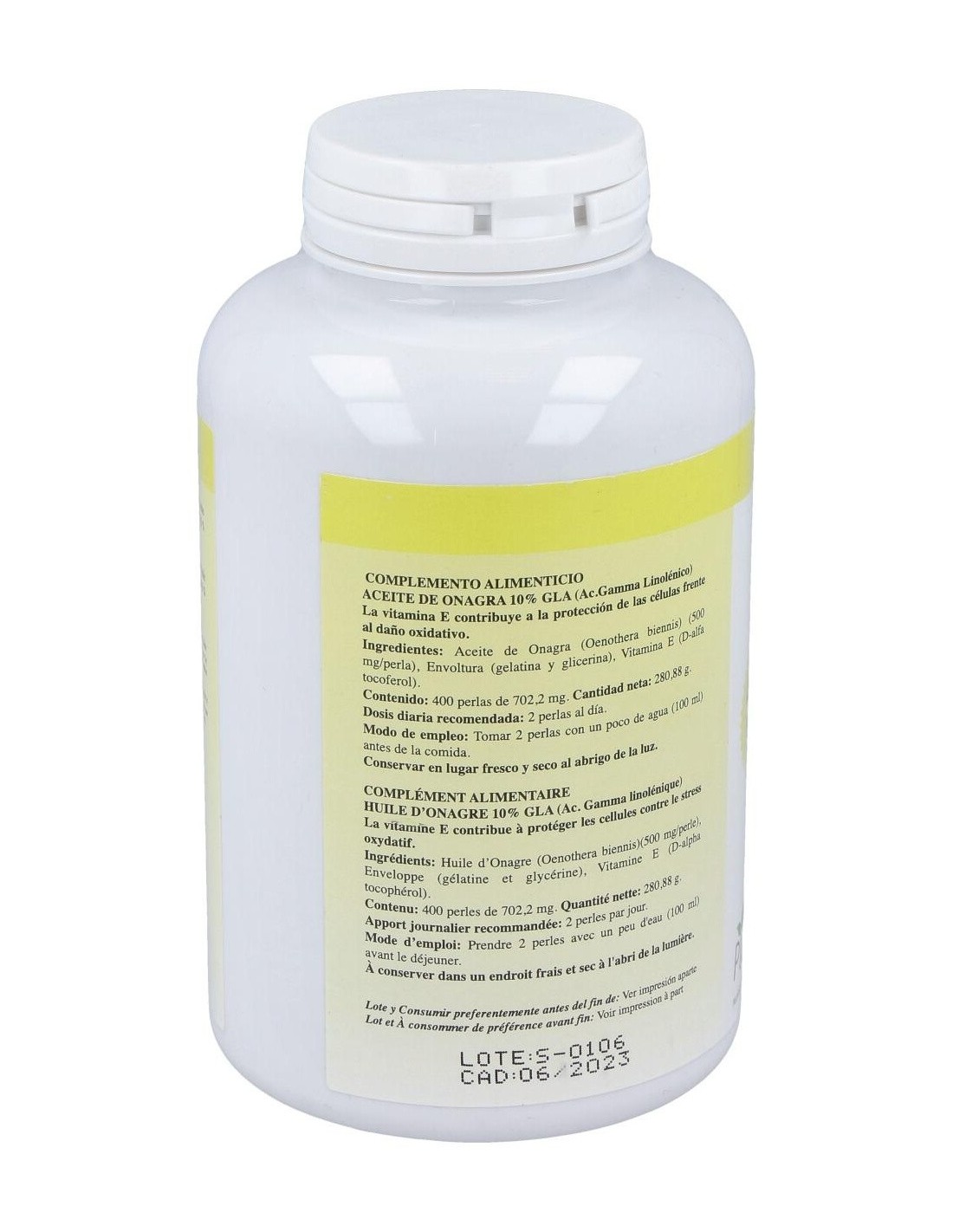 - Cada perla contiene 700 mg de aceite de onagra, proporcionando una dosis constante en cada toma.