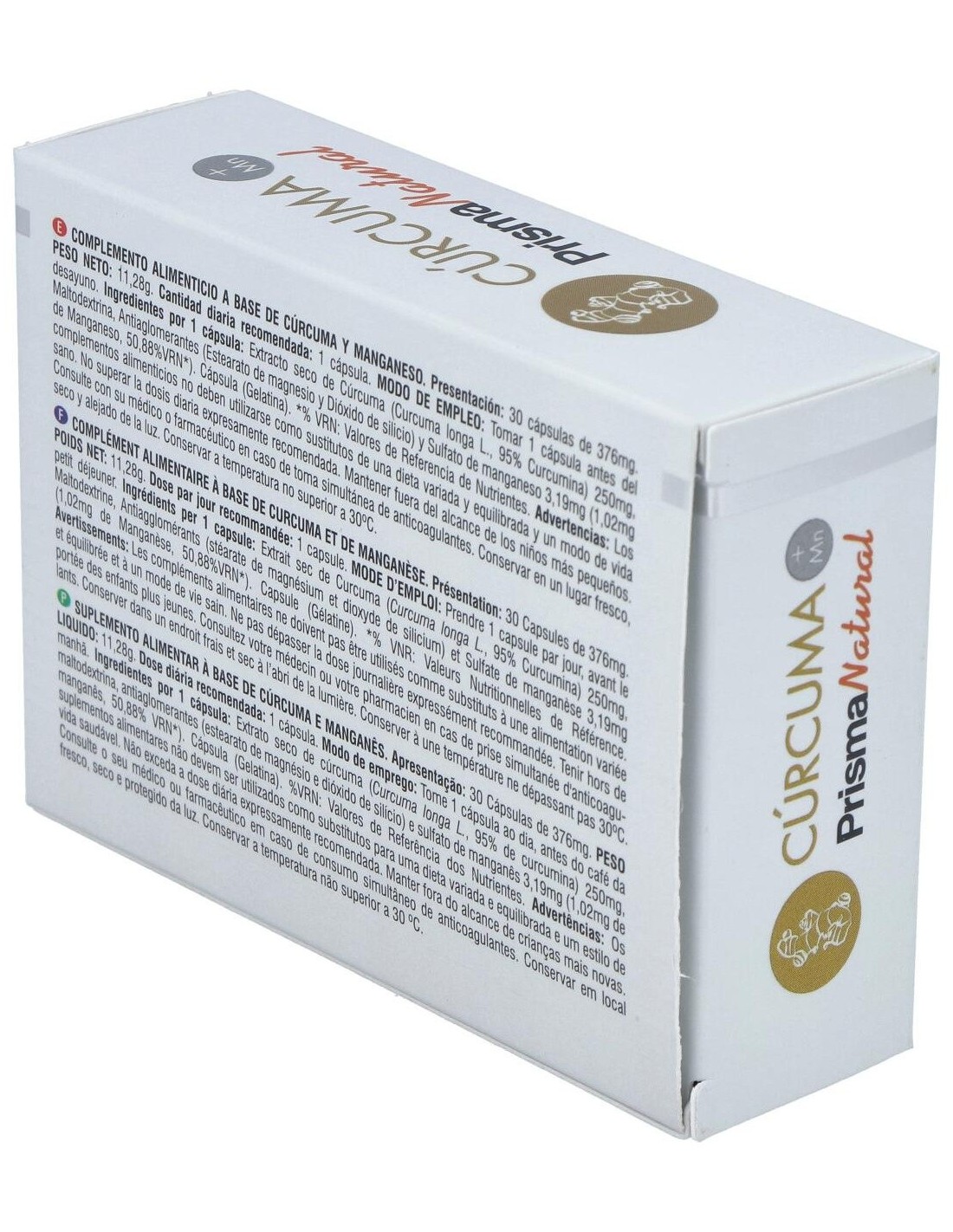Cursol® 250mg (Corresponde A 2 Gramos De Cúrcuma (Cúrcuma Longa L.), Curcuminoides), Agente De Carga (Maltodextrina), Antiaglomerantes (Estearato De Magnesio Y Dióxido De Silicio) Y Sulfato De Manganeso 3,19mg (1mg De Manganeso, 50% Vrn*).