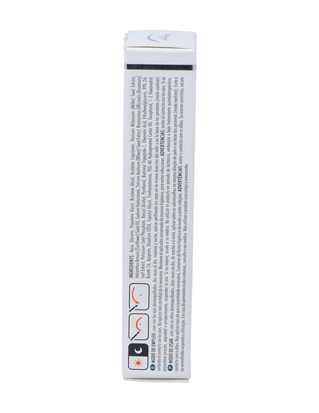 Emulsión gel de uso tópico que estimula la proliferación celular en el bulbo piloso y que ha demostrado que aumenta la longitud y densidad de las pestañas, consiguiendo un aumento de la longitud hasta un 45% en 2 meses.