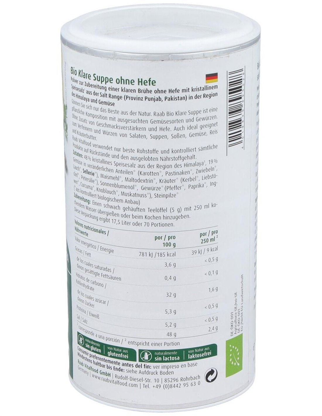 RAAB VITALFOODPolvo para la preparación de un caldo vegetal sin levadura con sal cristalina. Apto para veganos.