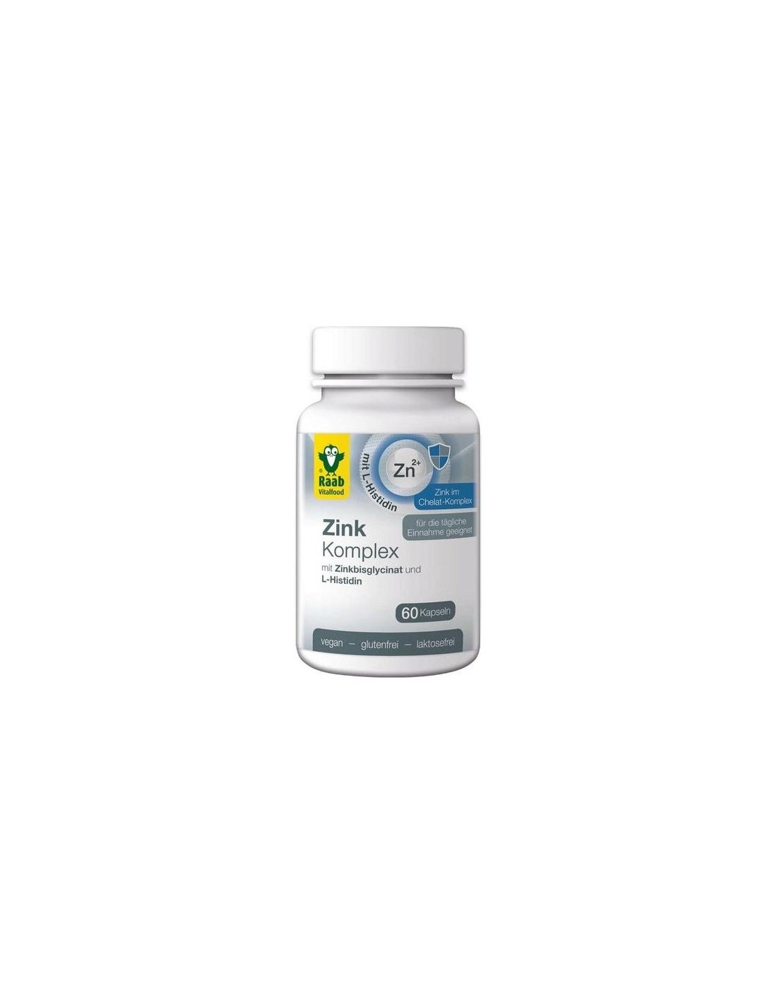 RAAB VITALFOODCápsulas veganas que contienen una combinación de bisglicinato de zinc y el aminoácido L-histidina. El bisglicinato de zinc es un compuesto de zinc especial en el que el zinc está recubierto por un complejo de quelato. El aminoácido L-histidina completa la fórmula a la perfección. El zinc contribuye a una función cognitiva normal, al funcionamiento normal de sistema inmunitario, al mantenimiento normal de la visión y a mantener la piel, el cabello y las uñas en condiciones normales.