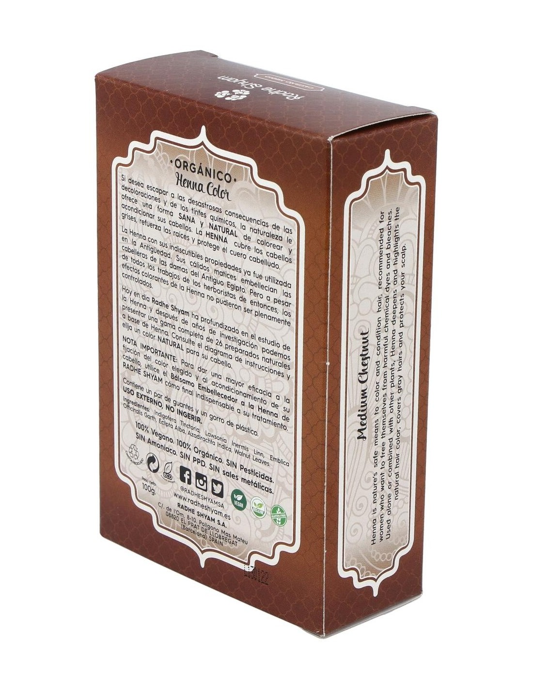 HENNA POLVO CASTAÑO MEDIO ECO 100gr. de RADHE SHYAM