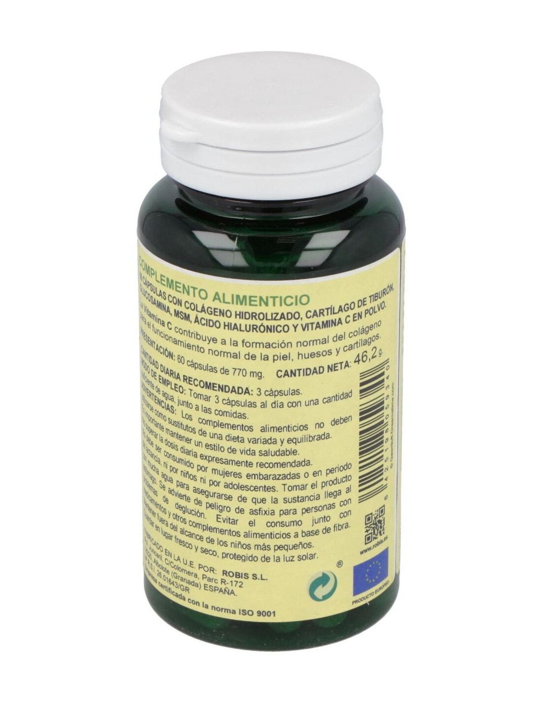 Complemento alimenticio natural que ayuda a estimular la producción natural de colágeno. Proteína que fortalece, especialmente, el sistema articulatorio, la piel, el cabello y las uñas. Es esencial para mantener el buen funcionamiento de organismo. Aporta firmeza a la piel, dureza a las uñas y luminosidad al cabello. Formato de 60 cápsulas.