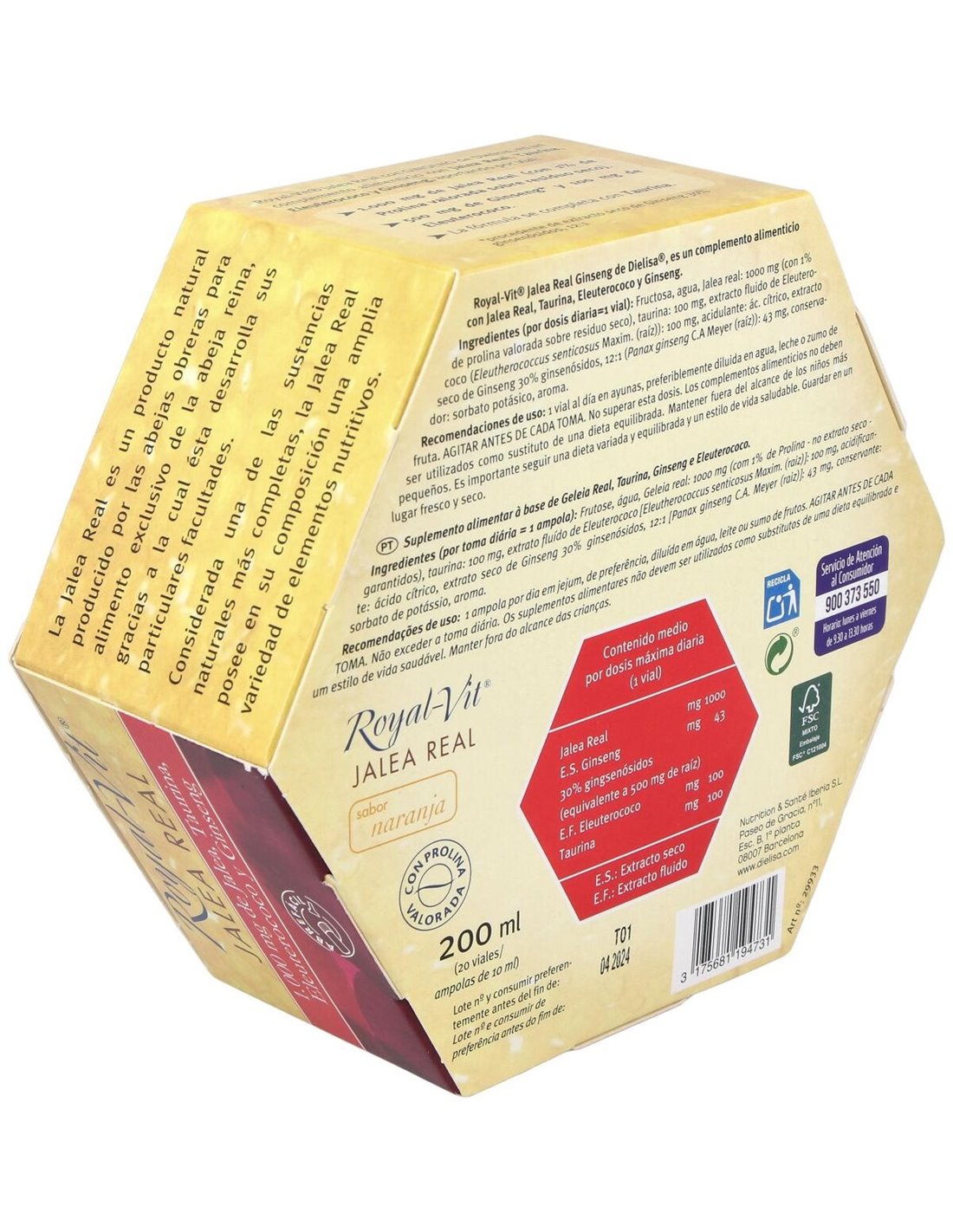 Jalea Real Royal Vit Ginseng 1000Mg Taurina 20Amp de Dietisa (Dielisa)