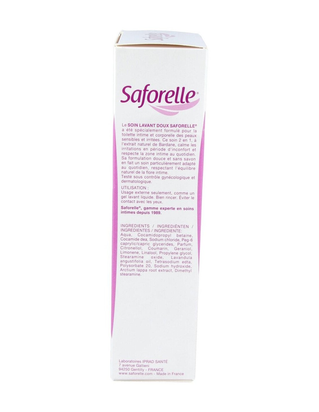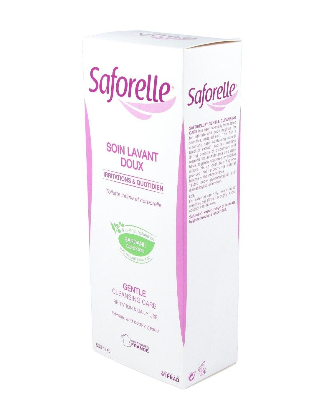 Saforelle gel íntimo te protegerá la piel de cualquier irritación, picor o rojeces. Es perfecto para todo tipo de piel, sobre todo para pieles sensibles o atópicas ya que limpia con total suavidad la zona y reduce la sensación de malestar, aliviando las irritaciones. Está enriquecido con una fórmula sin jabón a base deBardana que contiene propiedades calmantes y suavizantes.