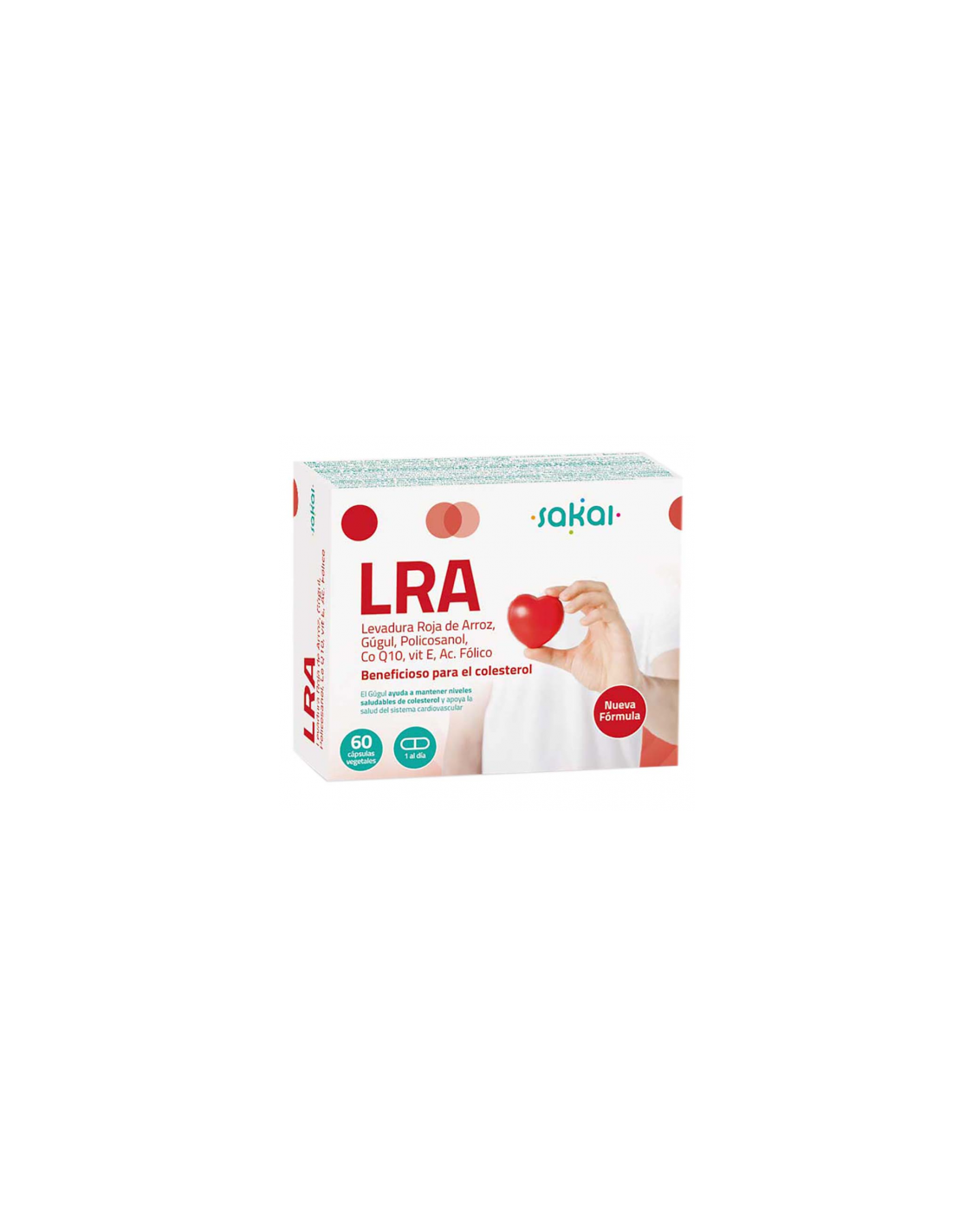 SAKAILRA es un complemento alimenticio a base Levadura Roja de Arroz, extracto seco de Gúgul, Policosanol, coenzima Q10, vitamina E y Ácido fólico. Su composición de Monacolina K del arroz de levadura roja contribuye a mantener niveles normales de colesterol sanguíneo. Producto vegano, sin gluten ni lactosa.