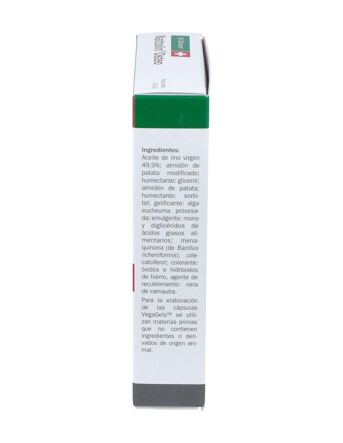 ACEITE DE LINO NATIVO (49,9%); ALMIDÓN DE PATATA MODIFICADO; HUMECTANTES: SORBITOL, MALTITOL, GLICEROL; MENAQUINONA; EMULGENTE: MONO Y DIGLICÉRIDOS DE ÁCIDOS GRASOS, ALMIDÓN DE PATATA, ALMIDÓN DE PATATA, COLECALCIFEROL; COLORANTE: ÓXIDOS E HIDRÓXIDOS DE HIERRO; AGENTE DE RECUBRIMIENTO: CERA DE CARNAÚBA.