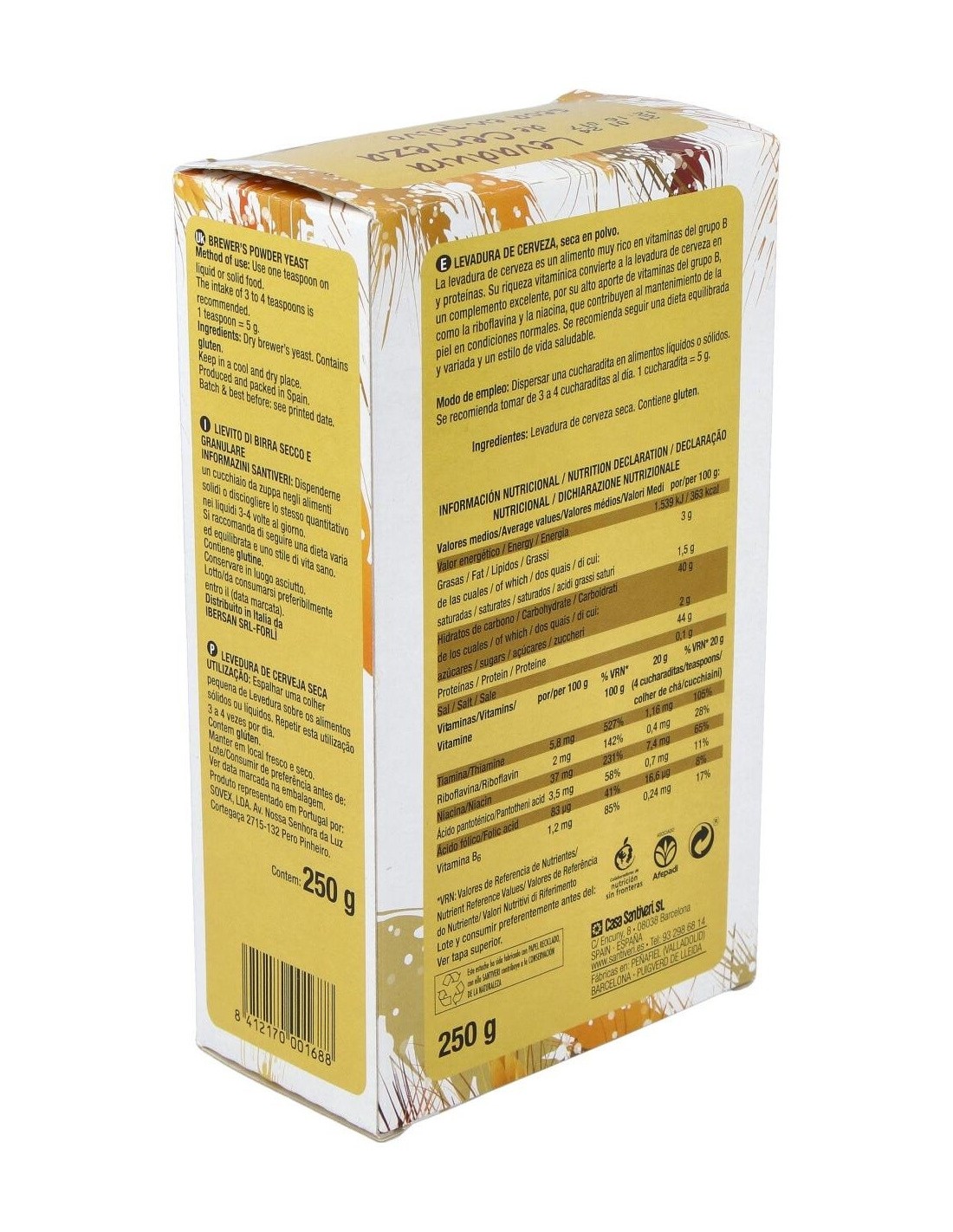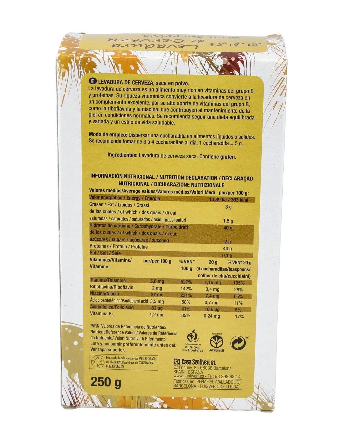 SANTIVERILa levadura de cerveza es un alimento muy rico en proteínas y vitaminas del grupo B. Apto para veganos.